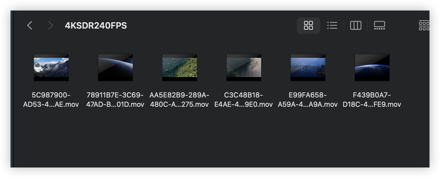 访达前往文件夹:/Library/Application Support/com.apple.idleassetsd/Customer/4KSDR240FPS