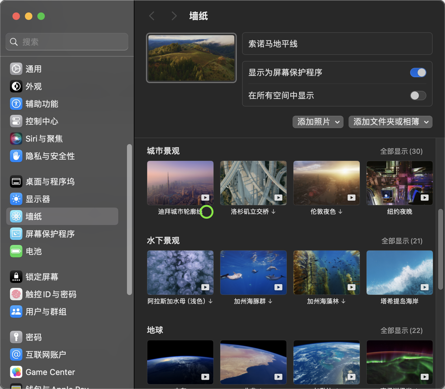 更新Sonoam后,新的动态壁纸很漂亮,但是空间占据应该不小,下载之后并不能像往常点右键删除,请问如何删除下载后不再使用的新壁纸或者屏保。