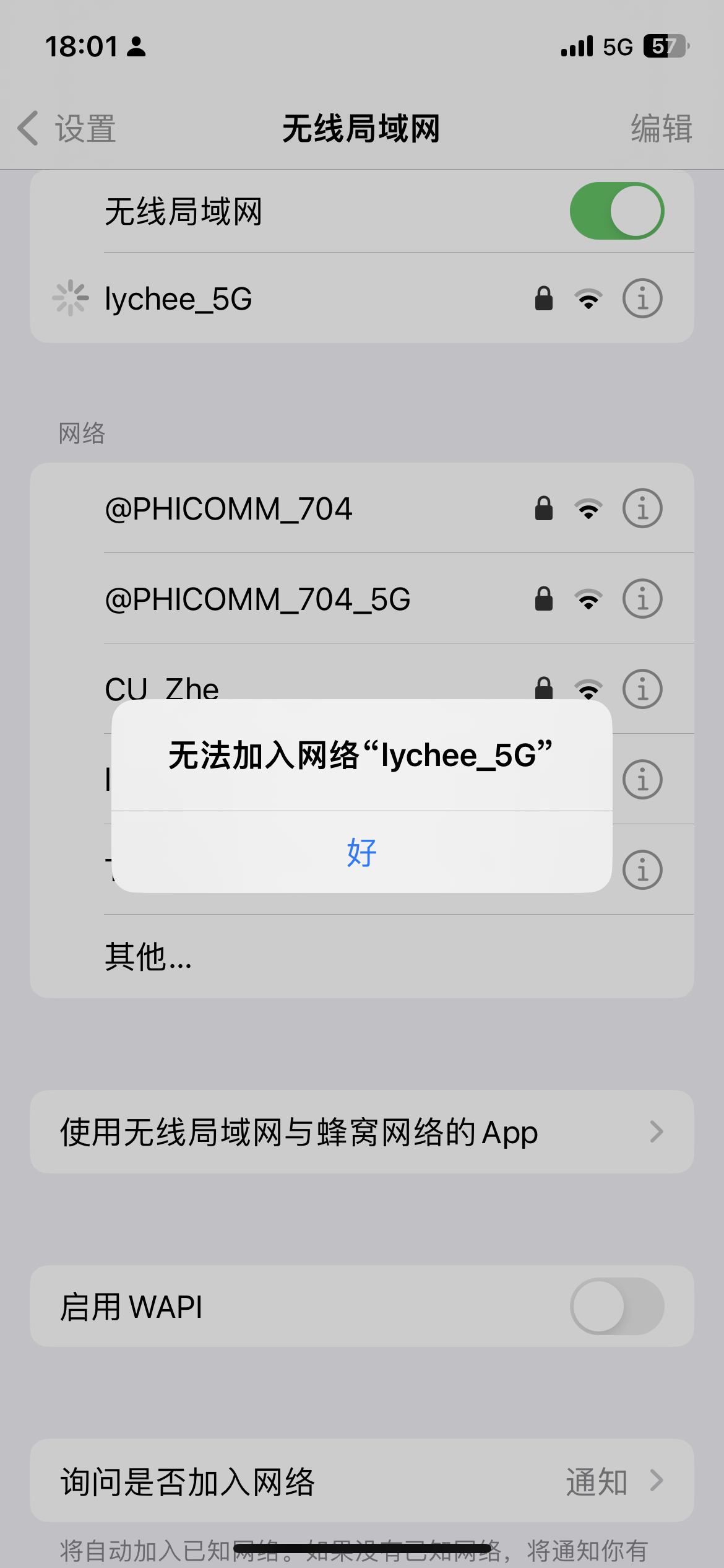 iPhone 12 在连接频宽为160MHz的5GHz WiFi信号后,无法连接同名(SSID)且频宽为80MHz的WiFi信号