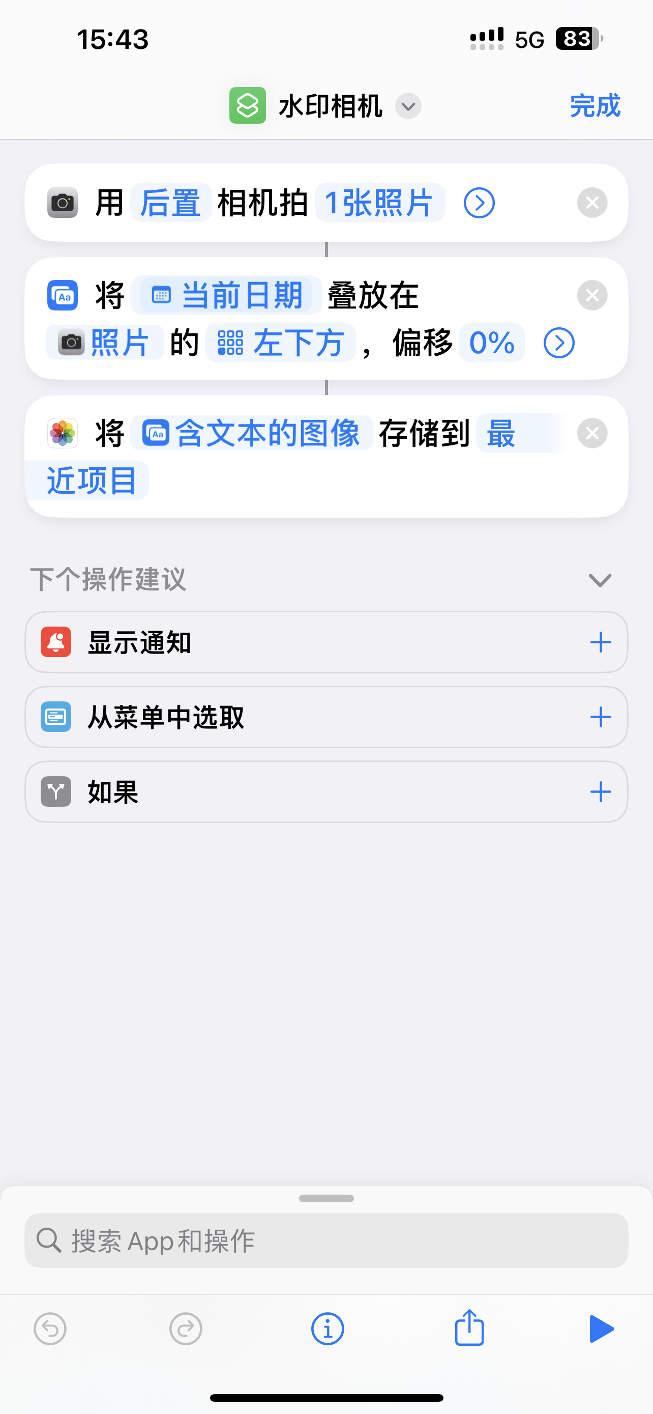 我想利用快捷指令app做一个水印相机的指令,在过程中遇到了一些问题。