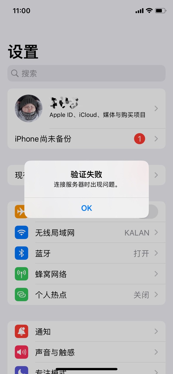iPhone X 设置内尚未备份这里点不进去,提示验证失败,链接服务器时出现问题,这种情况有谁知道怎么解决吗?