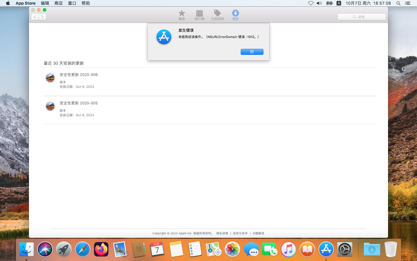 macos high sierra无法检查更新,在刷新提示错误,错误在—1012。