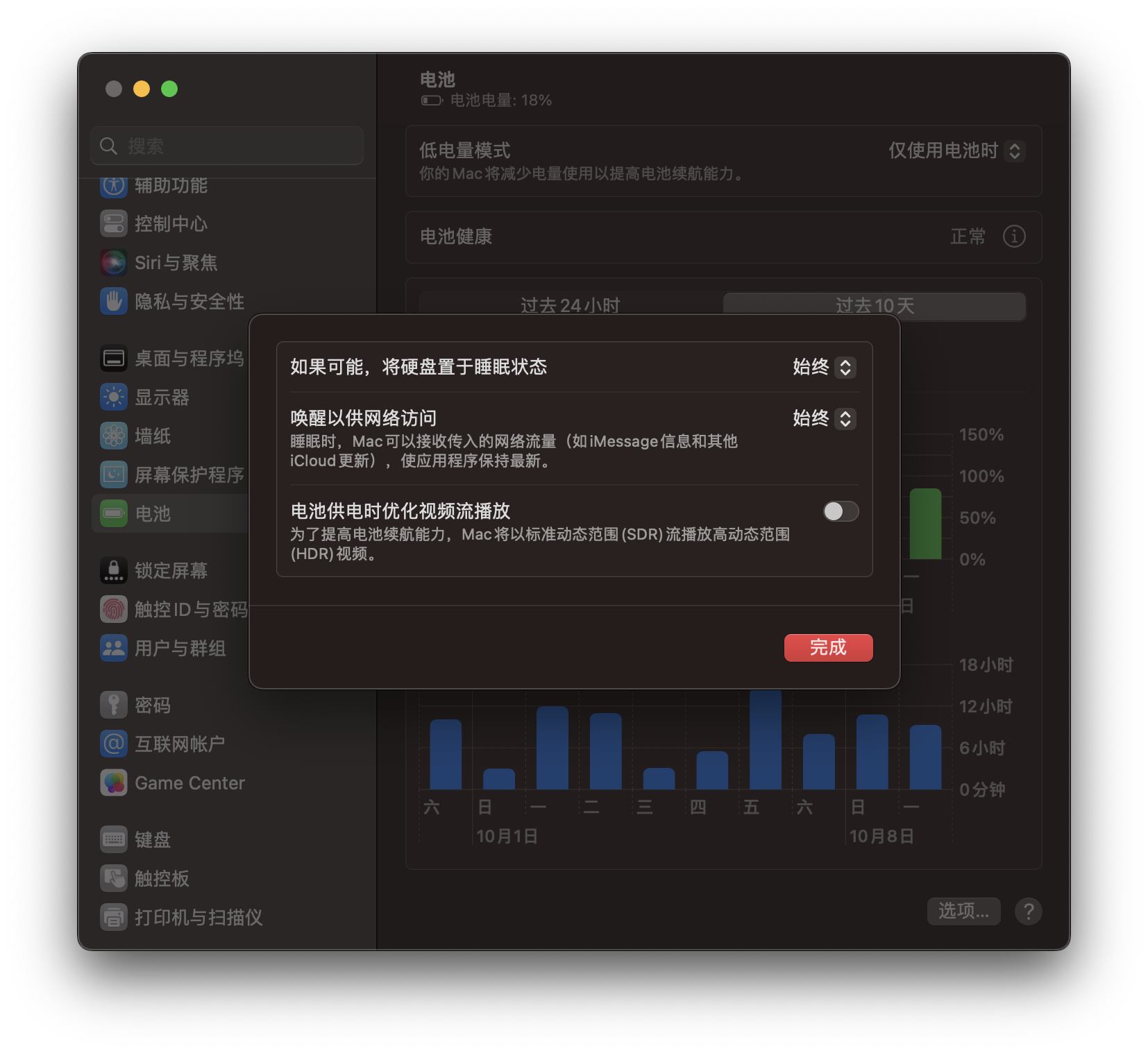我后面又帮你看了一下。在电池设置 高级中,可以把第二个选项设为“始终”,这样应该会解决你的问题。
