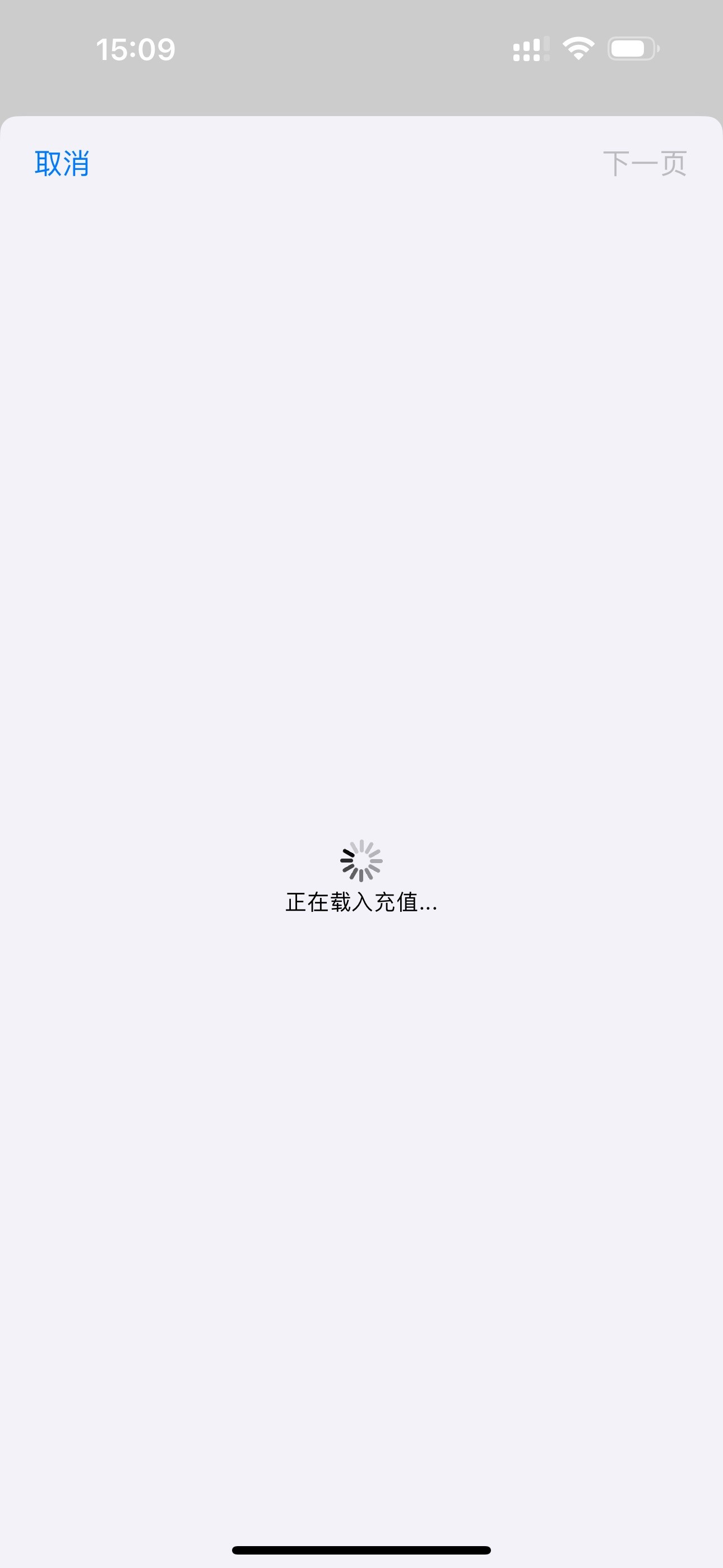 点击“为Apple ID充值”之后,一直显示“正在载入充值…”,一直转圈不跳转
