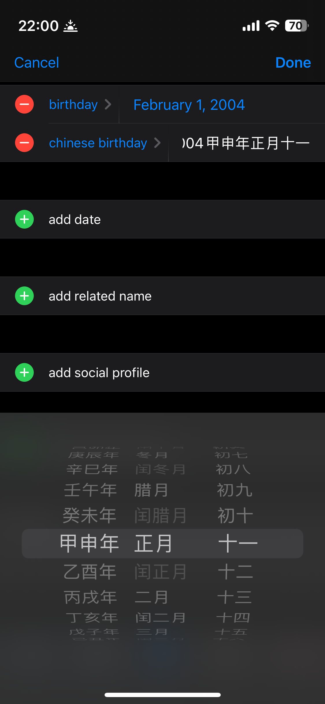 我了解到你无法在 iPhone 上的“通讯录”中添加农历生日。由于暂时还没有其他社区用户来回复你的帖子,在此之前,建议你不妨先尝试以下操作步骤:
