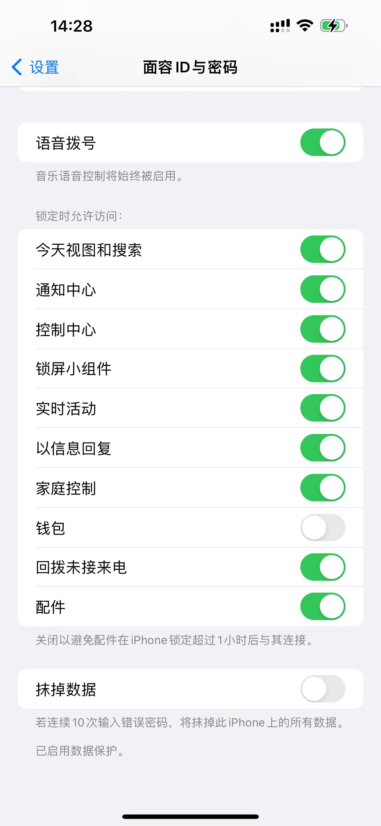 设置里--找到面容id与密码--往下滑,找到如图所示,开关都打开