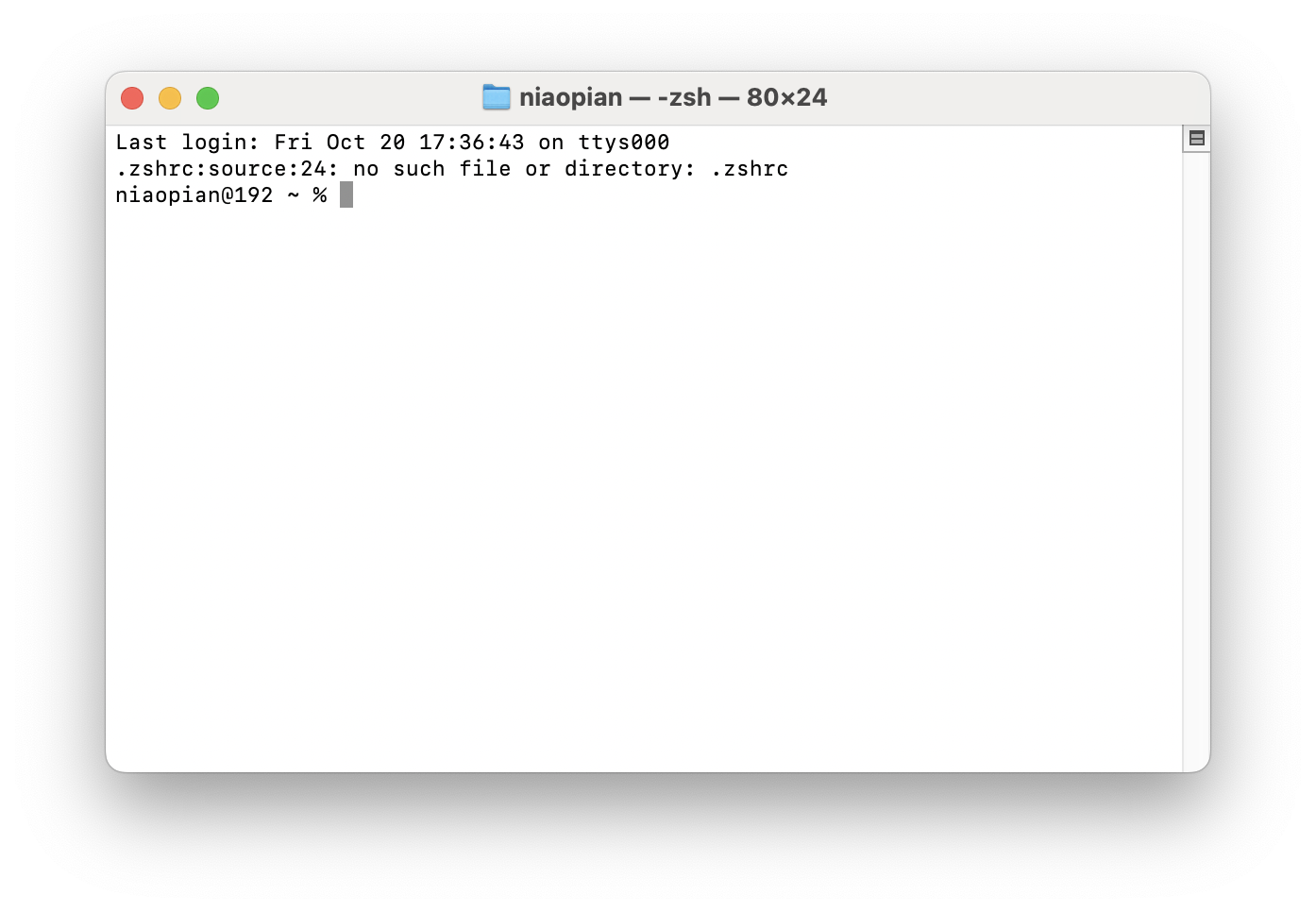 每次启动终端,界面如图1所示,会卡在这个状态4、5分钟左右。然后才会正常加载出“名字@设备 ~ %”,这时候才可以运行指令
