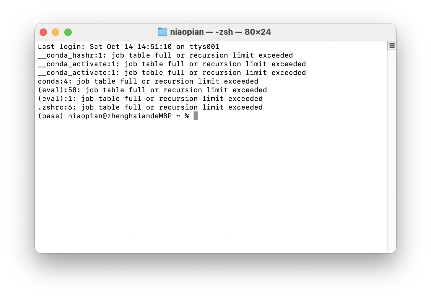 MacBook Pro 14″终端打开后需要加载5分钟,无法直接运行指令