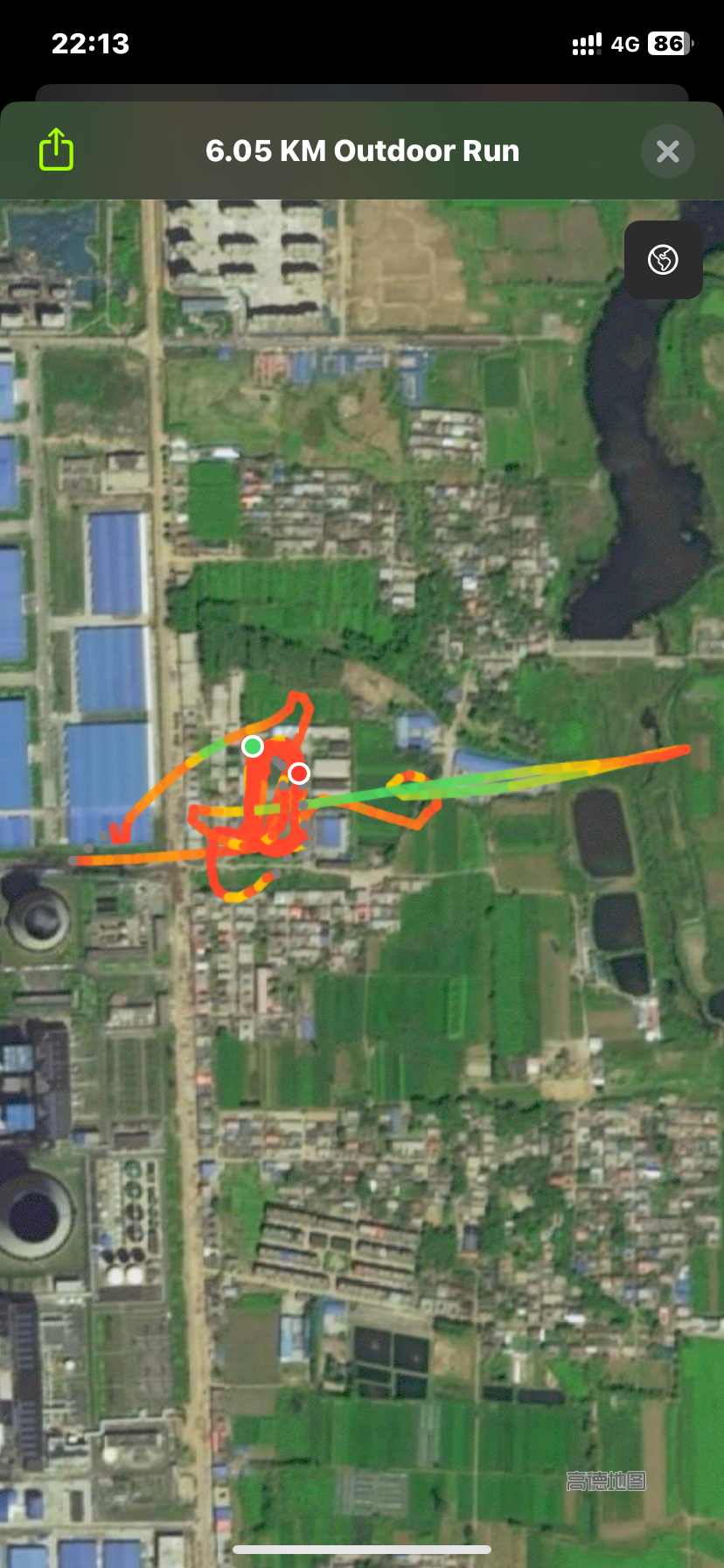 第一次使用Apple Watch跑步,发现数据不准确。目前判断是,由于轨迹突然变化导致记录的跑步路程发生变化。实际的轨迹是绕操场跑步,而记录的轨迹杂乱。