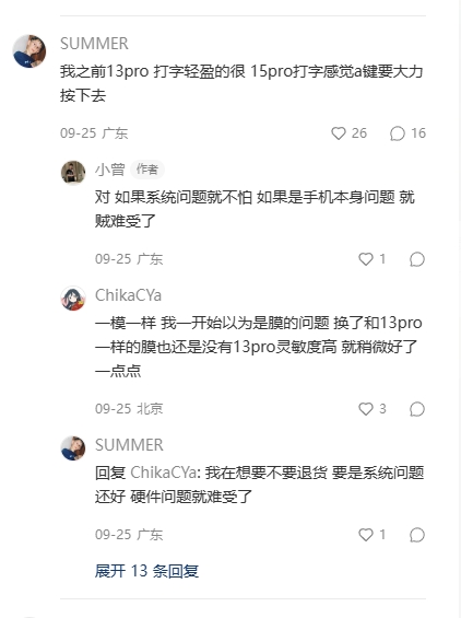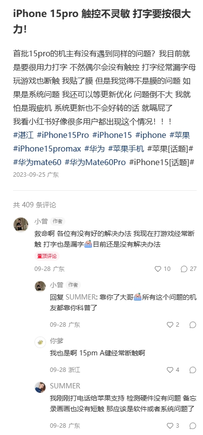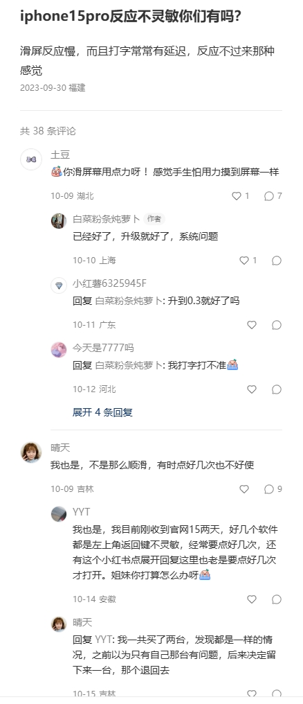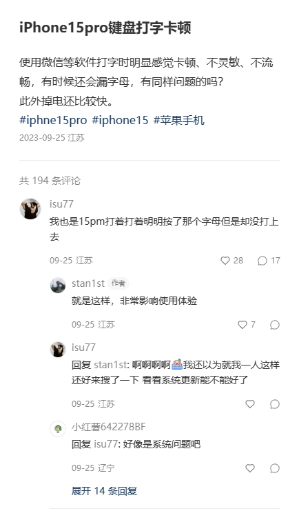 iPhone15pro 触摸不灵敏打字老是漏字母,去售后检测说硬件没问题,是系统问题吗?并且各个平台部分用户都反馈有这种问题。