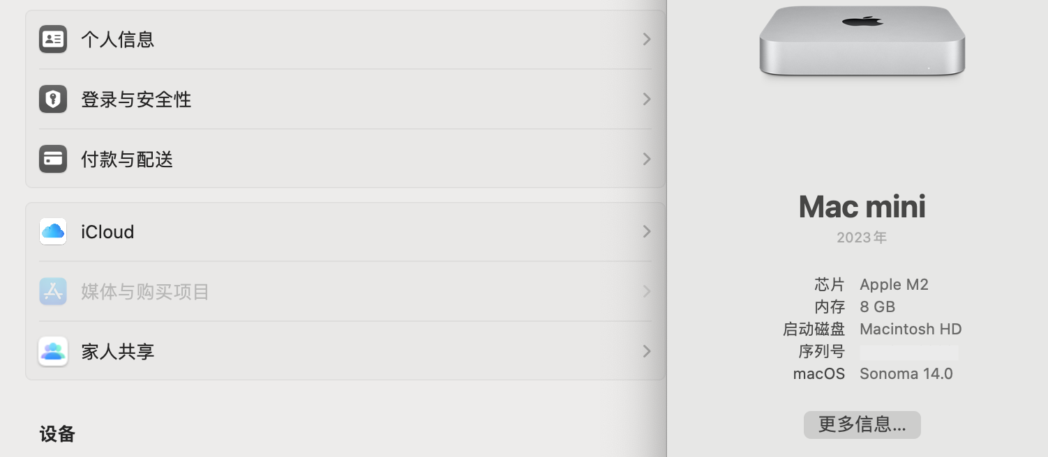 在 Mac mini 中媒体与购买项目灰色无法点击