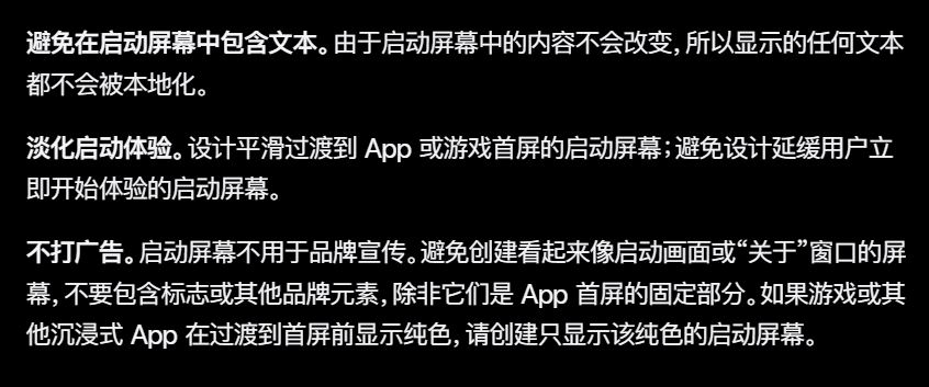 指南中还提到“理想的启动屏幕实际对用户不可见,因为它只是为初始内容提供上下文”。