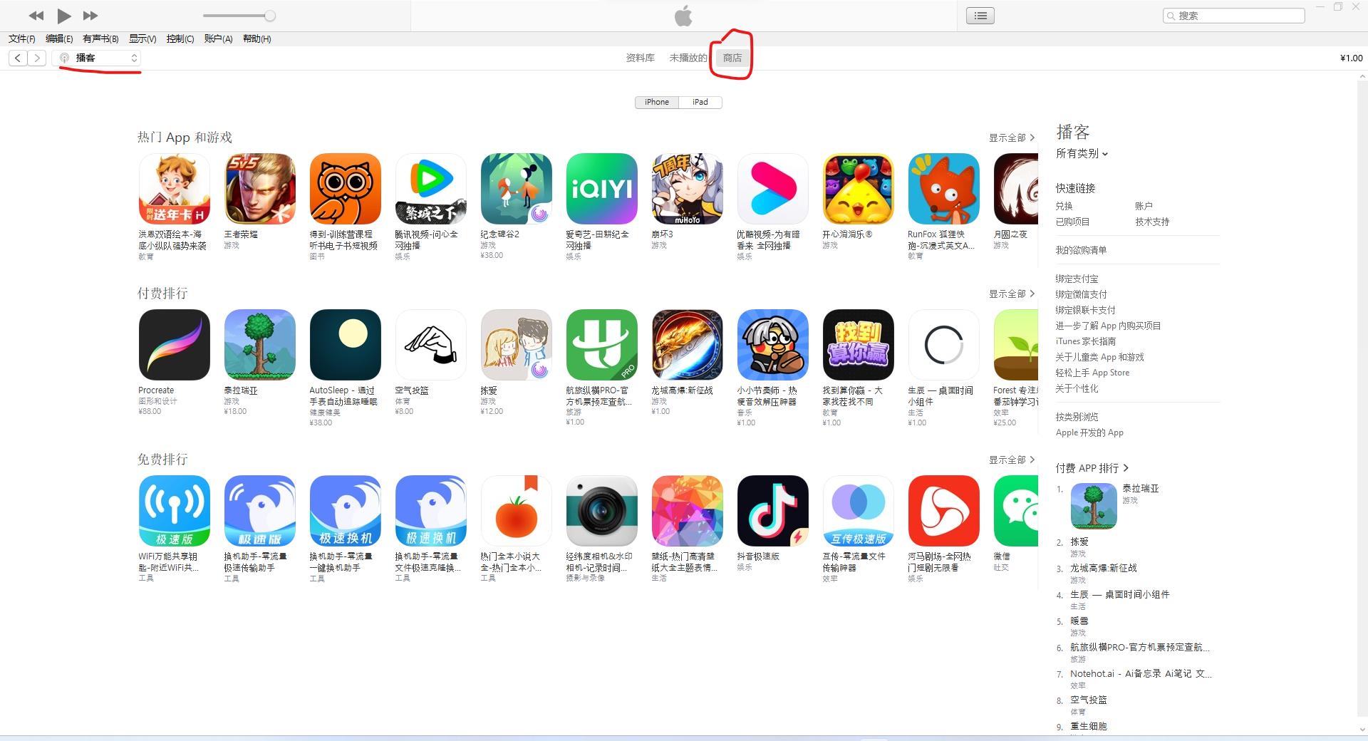 2、对于iTunes布局有些疑惑:“商店”怎么归纳到“播客”项目中了,应该为单独一项(图3)