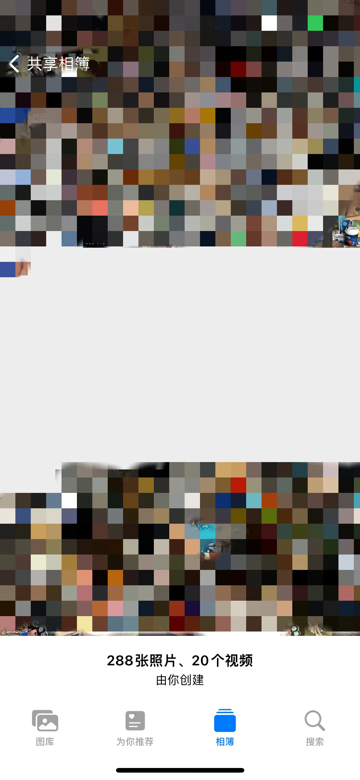 但是最近一次上传到共享相册的相片双方都无法看见,只显示空白的界面,不显示照片,且icloud空间充足。