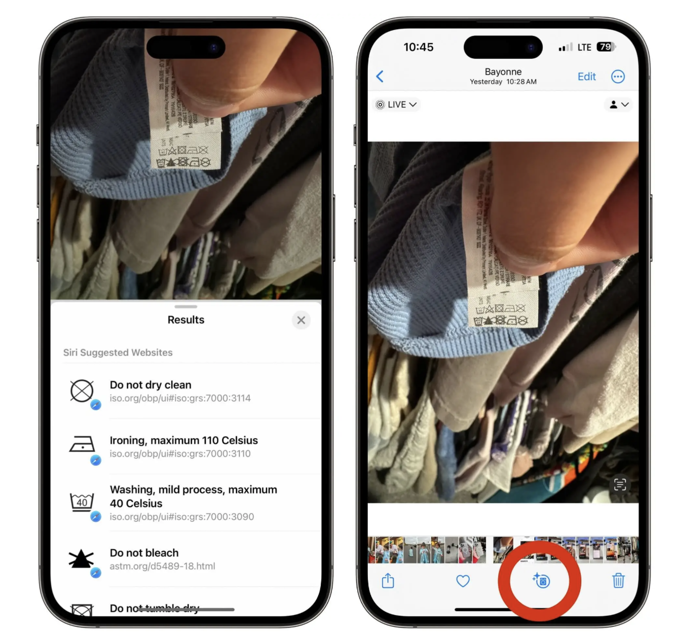 对着衣服标签拍照,照片有一个类似二维码识别功能,可以将照片上的标签信息识别出来,这个功能我一直没有找到,示意图片我上传了。