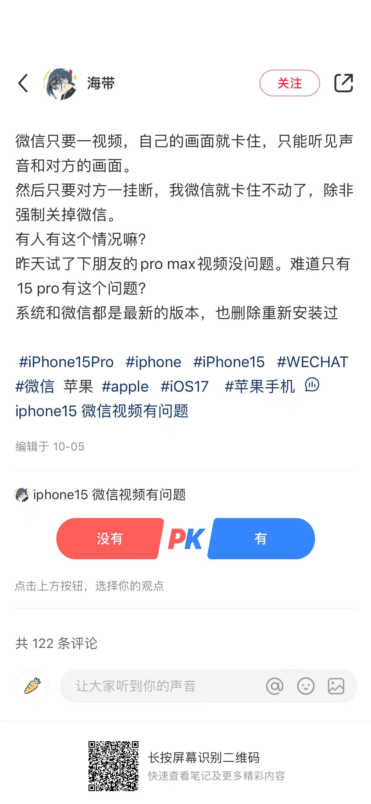 iPhone中微信只要一视频,自己的画面就卡住,只能听见声音和对方的画面