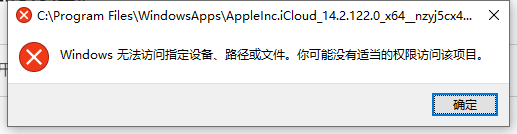 我现在使用的是win10系统,在微软商店中安装icloud之后,不能打开,提示Windows无法访问指定设备、路径或文件。你可能没有适当的权限访问该项目。请问这个问题应该怎么解决??