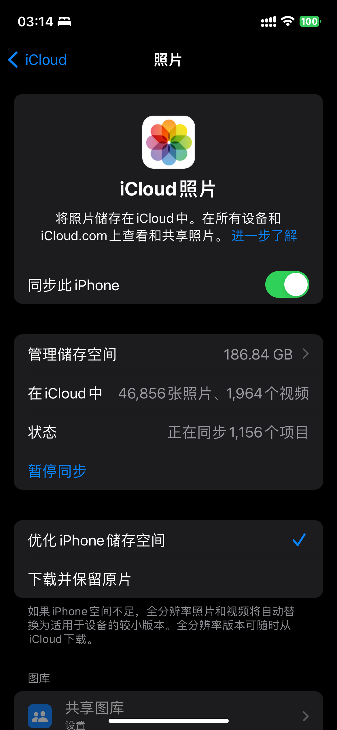 iCloud已经一个多月没有同步相册了,每次发现它暂停了就点一下立即同步,但哪怕是在充着电WiFi稳定储存空间充足的时候也无法同步至云端。