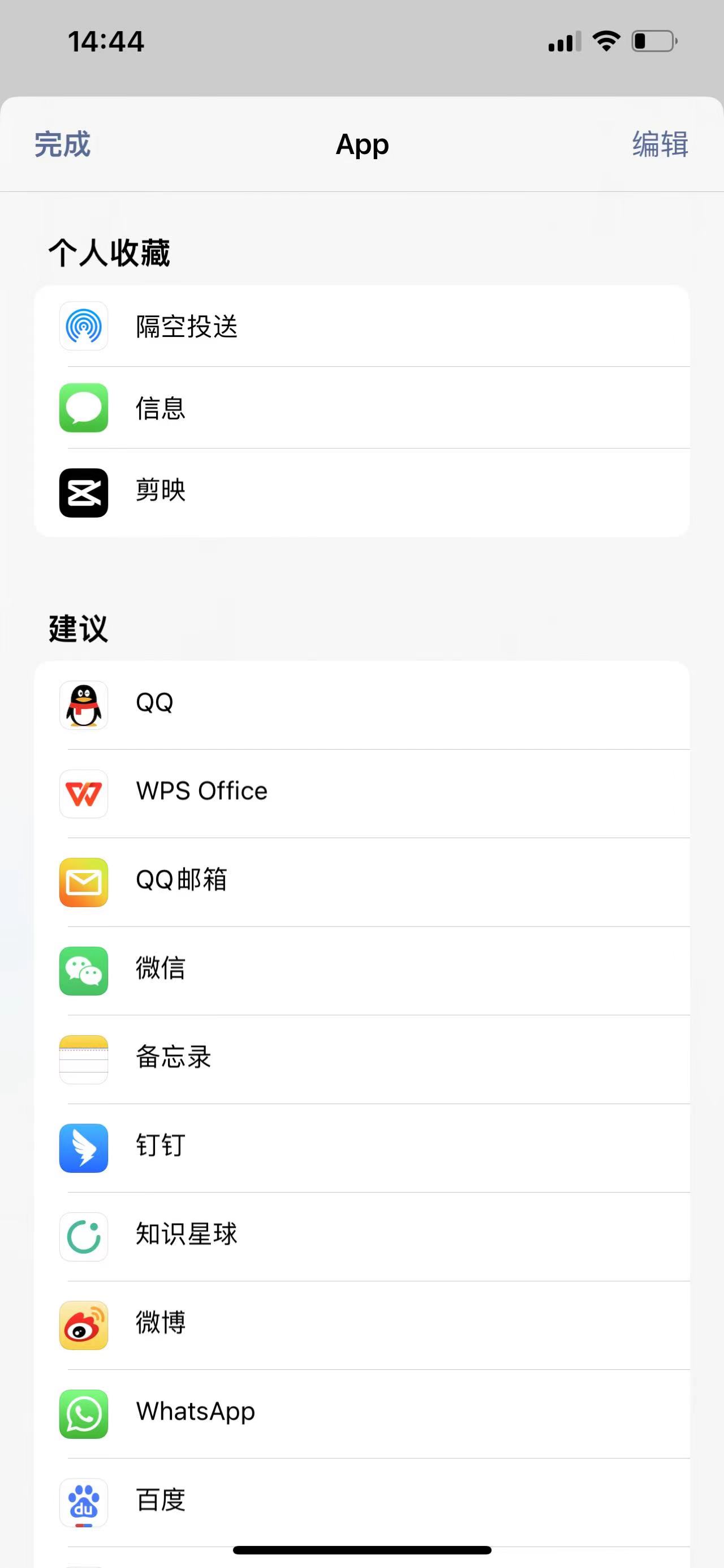 图1是同事的,人家就有这个功能,我是ios 16.3.1 ,如图2,没有语音备忘录,请问怎么添加使用其他应用打开,语音备忘录。