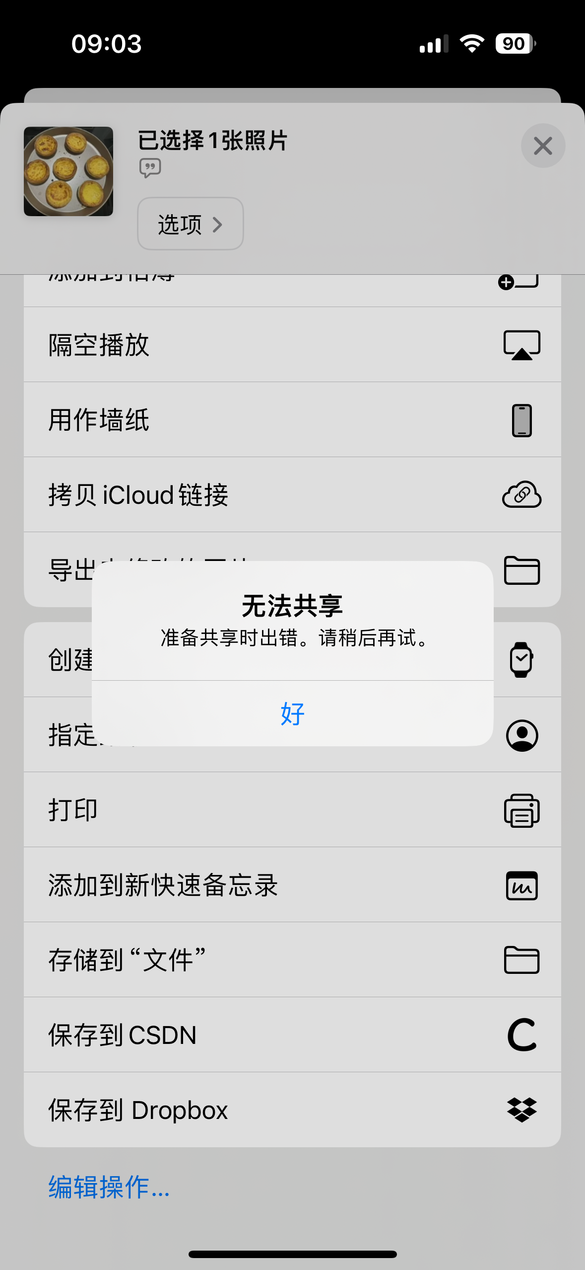 想给别人共享iCloud照片链接时,提示无法共享,准备共享时出错,请稍后再试