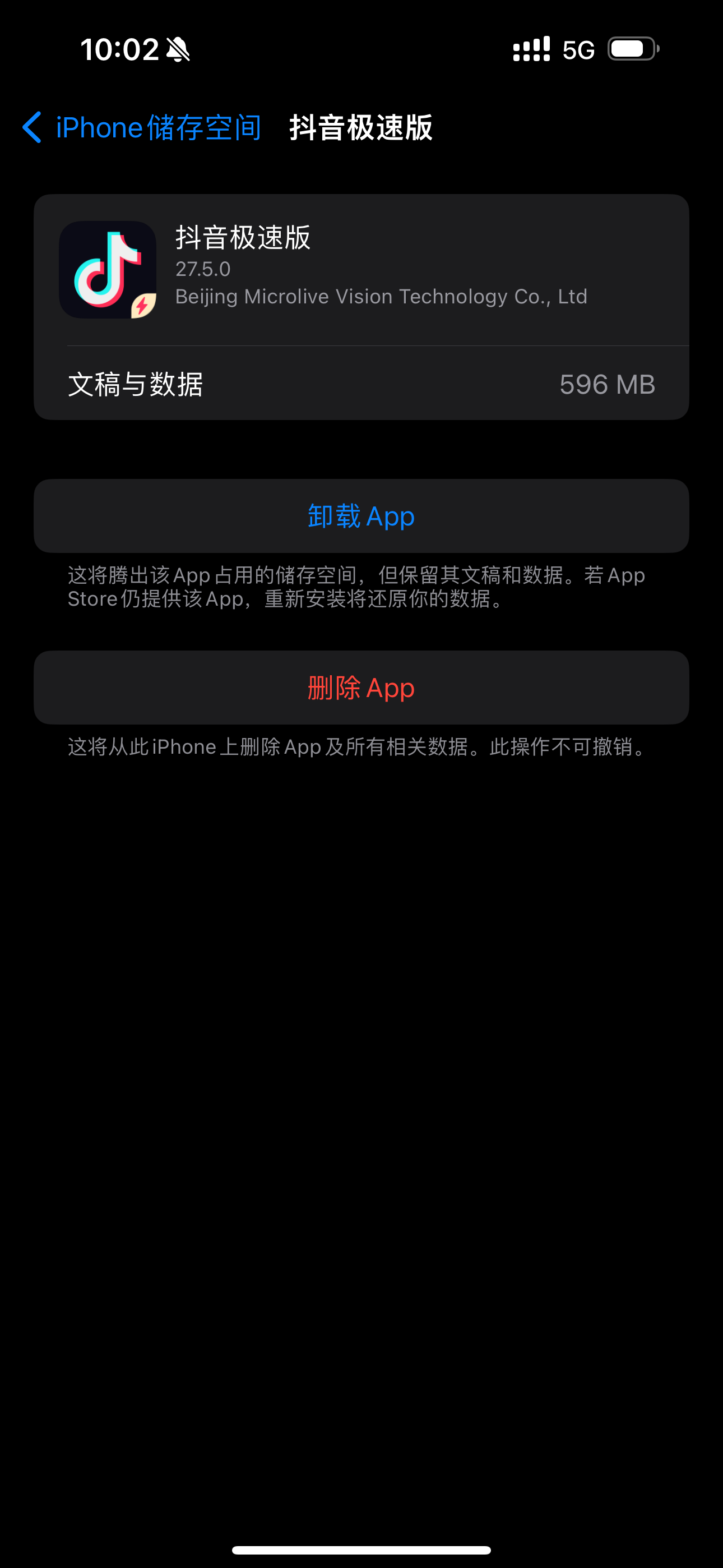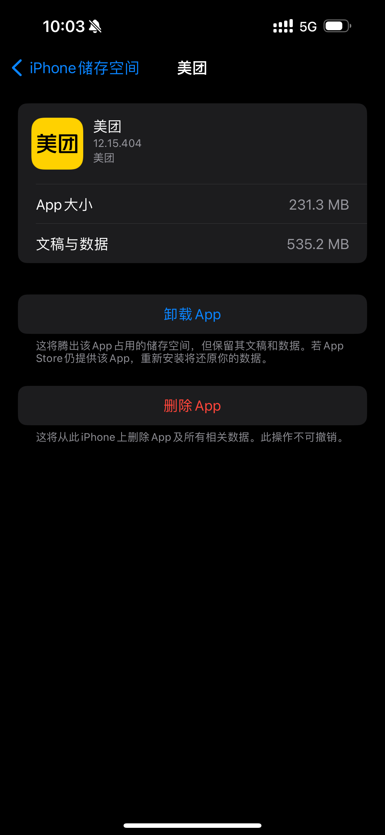 在 iOS 17.1.1 中 iPhone 15 Pro Max 存储空间中 app 不显示占用大只显示文稿与数据的大小