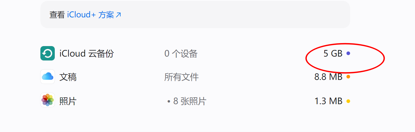 iCloud云备份——0设备——5G 是什么?是不是在这里满了?内容是什么?按正常路径没法看见及管理这5G。