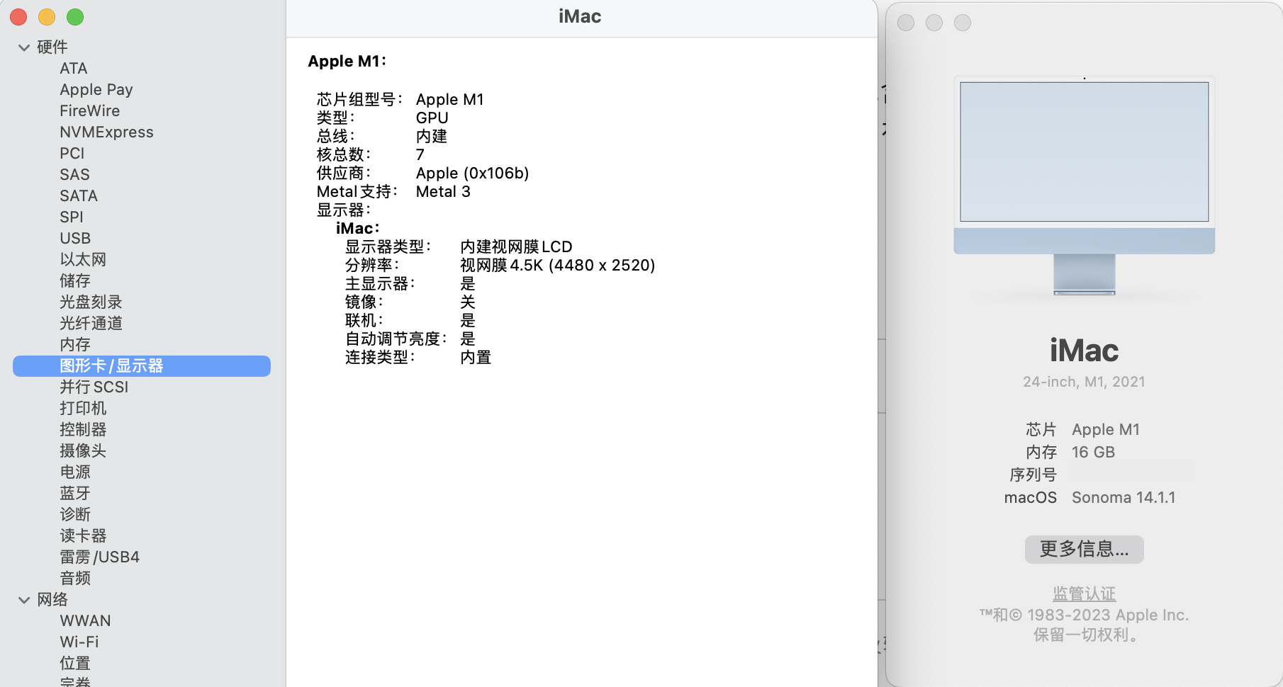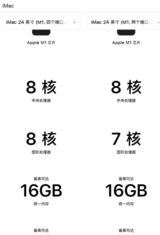 2022 年 1月 11 日在苹果官网买的翻新版 24 寸M1 版 iMac。平时没怎么注意,今天查看硬件参数,发现 GPU 少了一个核心。我从来没有拿出去维修过。这台电脑标准配置应该是 8 核CPU 和8 核GPU 吧,为什么缺了个核心?