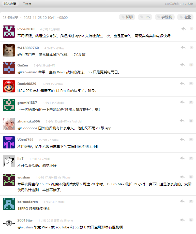 因为我十分信任苹果,所以我的旧手机当场已经以旧换新抵掉了,我本身就是轻度使用,从6s开始到x到现在这台15pro,都是基本用到卡了再换,我父母从xr换到12也换的比我频繁,但是现在就连我这样轻度使用都有严重的续航焦虑,我觉得这样用一个小时左右的qq聊天就能掉将近20%左右的电是非常难以接受的,我现在希望能得到个解决方案,即使是系统的升级也好,换货能解决也好,请给我个解决方法