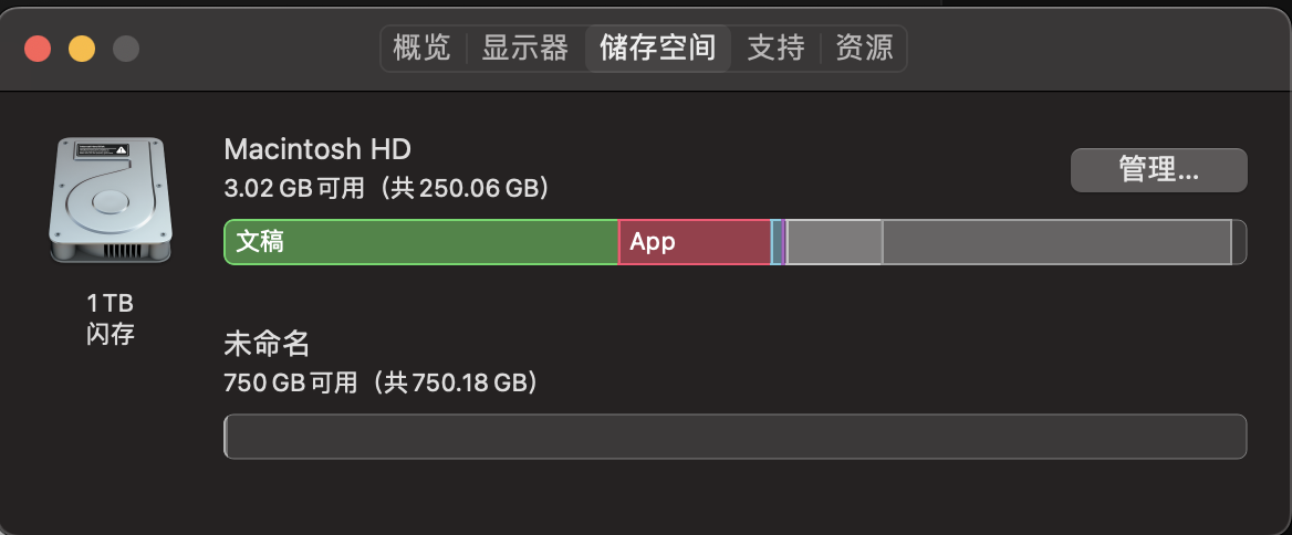 Macbook 储存空间为1T,其中一个储存空间满了,另外一个未命名是空的,怎么保存图片视频到这?