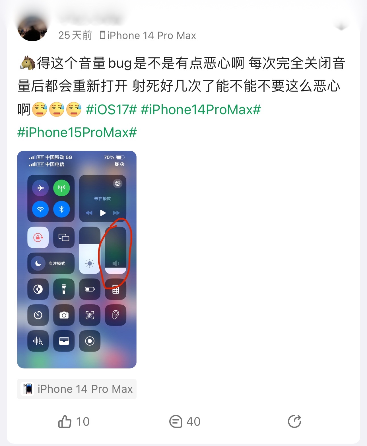 通过控制中心或者音量调节按钮调整音量至最低后,会自动调整至调节前大小,有时候出现一次有时候出现两次,非个例,通过其他数码社区发现最近的版本很多人都出现这个问题