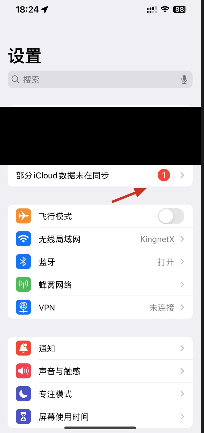 iPhone 通用内有个“部分icloud数据未在同步”的红点一直无法去除