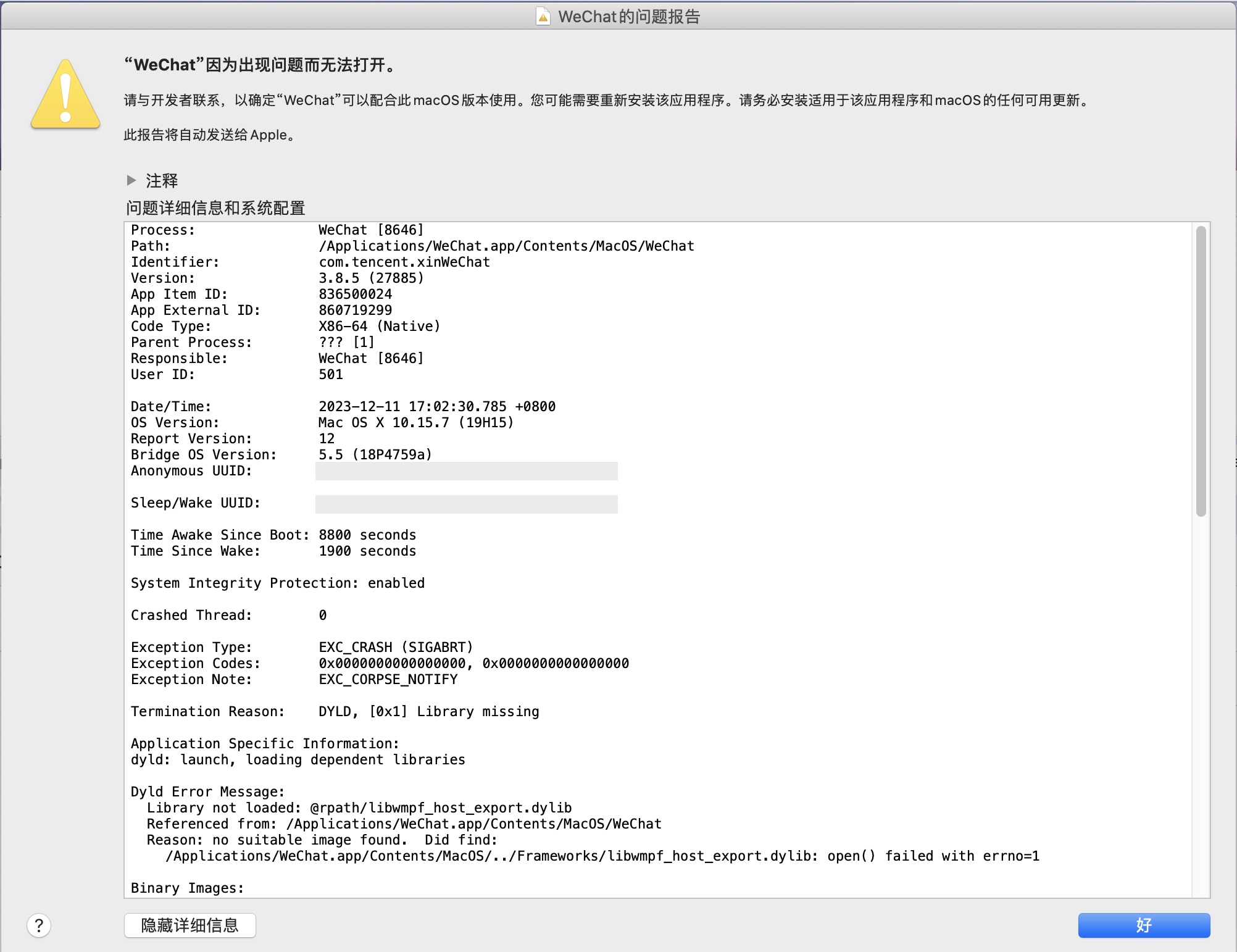 我了解到你在使用 Mac 时遇到了“微信”App 无法打开的情况。由于暂时还没有其他社区用户来回复你的帖子,在此之前,建议你不妨先尝试以下操作步骤: