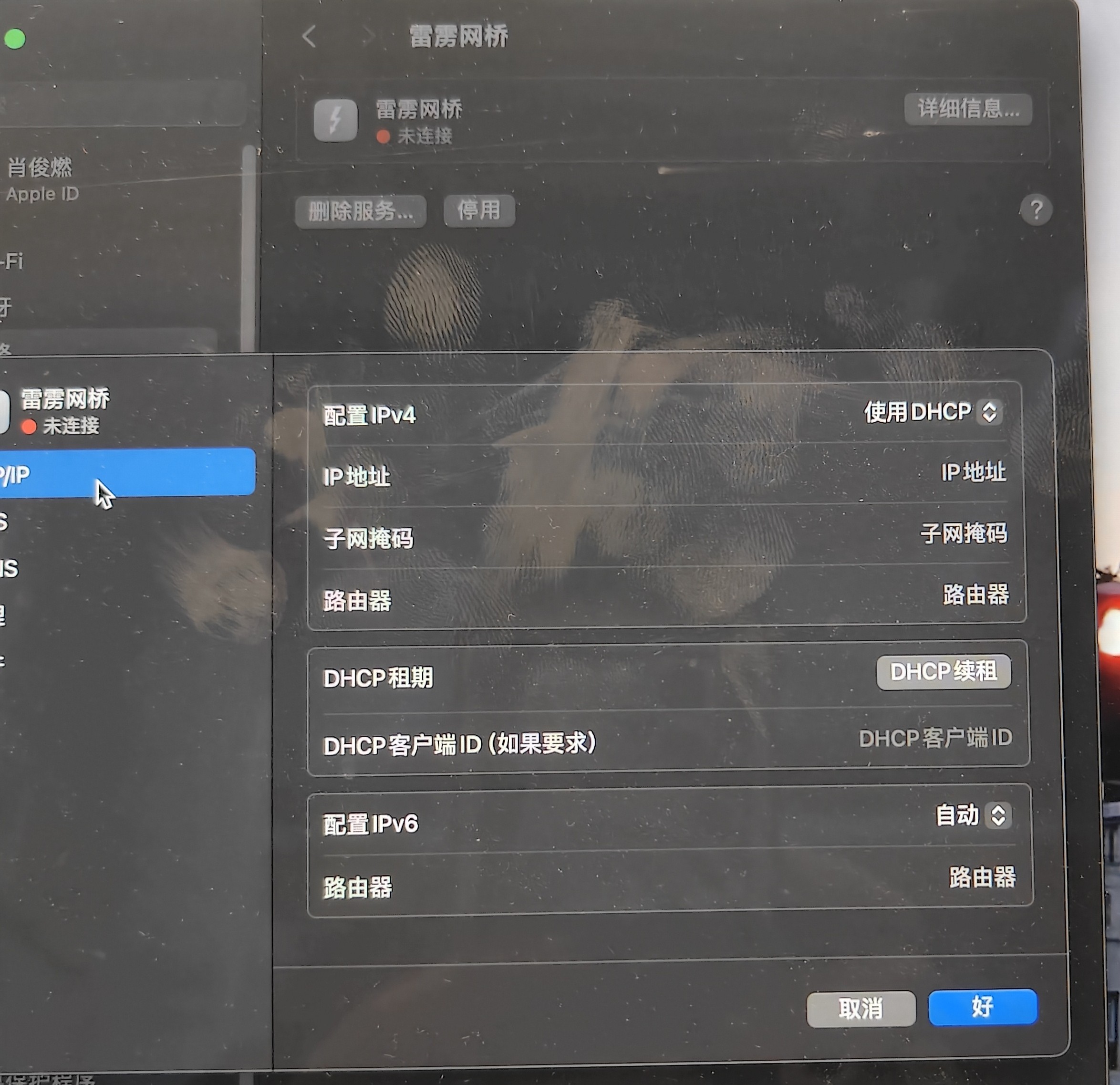 可以连接互联网,但是无法使用网络,网络中显示雷雳网桥未连接