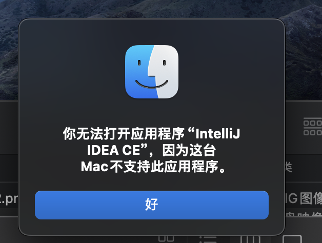 我在下载最新的idea后,通过应用程序所在位置无法直接开打idea,会显示你无法打开应用程序“IntelliJIDEA CE",因为这台Mac不支持此应用程序。