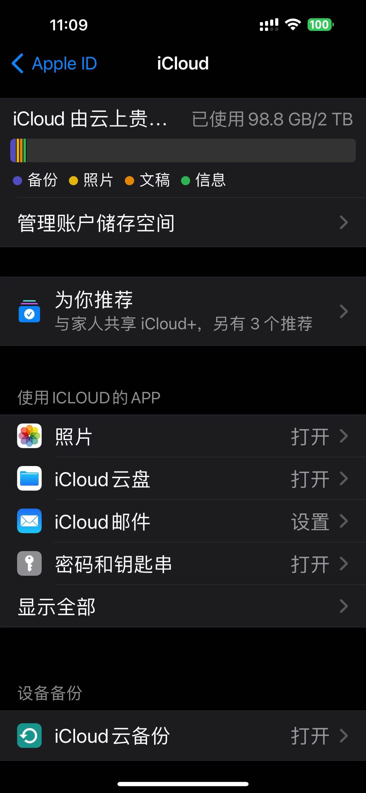 目前本地手机用了166G。其中iOS+系统用了26G。前几天订阅了2TB,开启了iCloud云备份。今天早上起床看用了109G,刚才看用了99G,少了10G,什么情况?