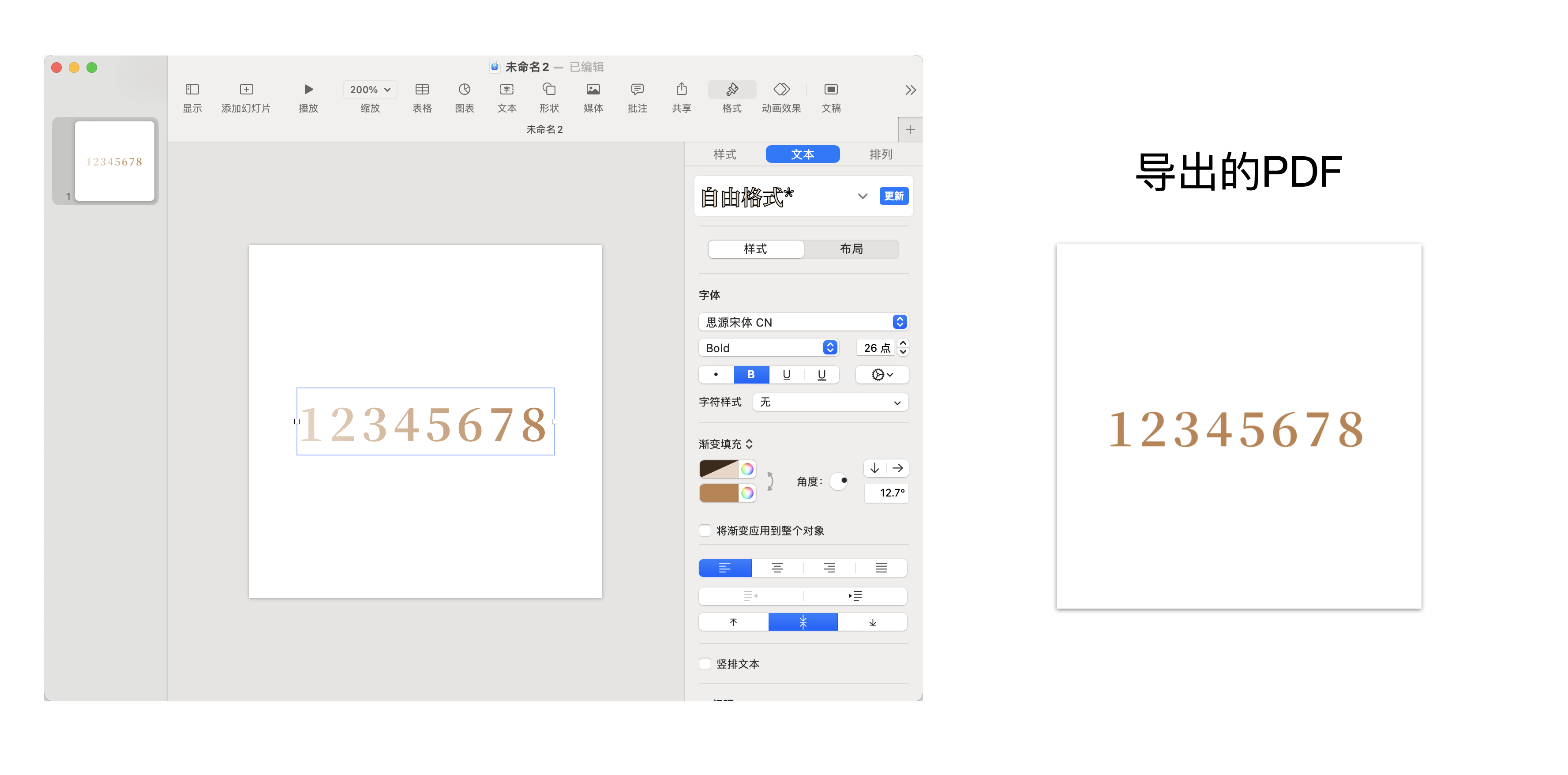 Keynote导出PDF格式,渐变颜色无法正常显示