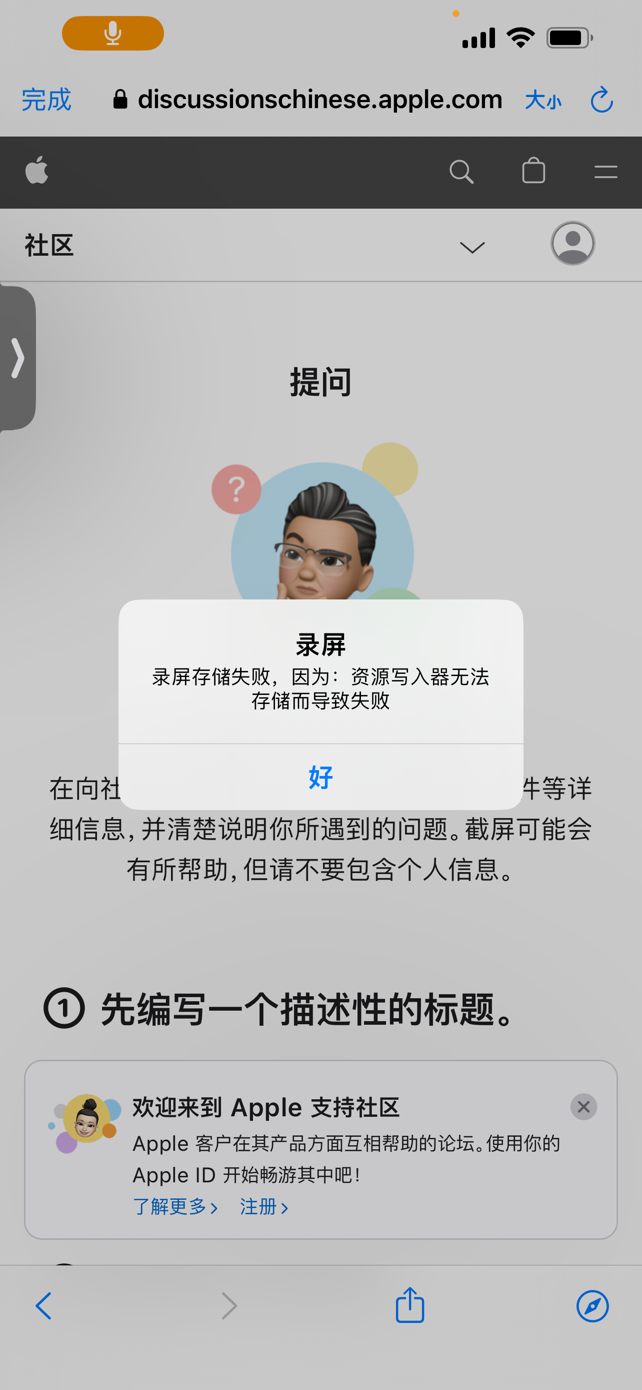 刚开始还可以录屏,录了三个视频以后,再开始录屏就不行了,提示这个弹窗
