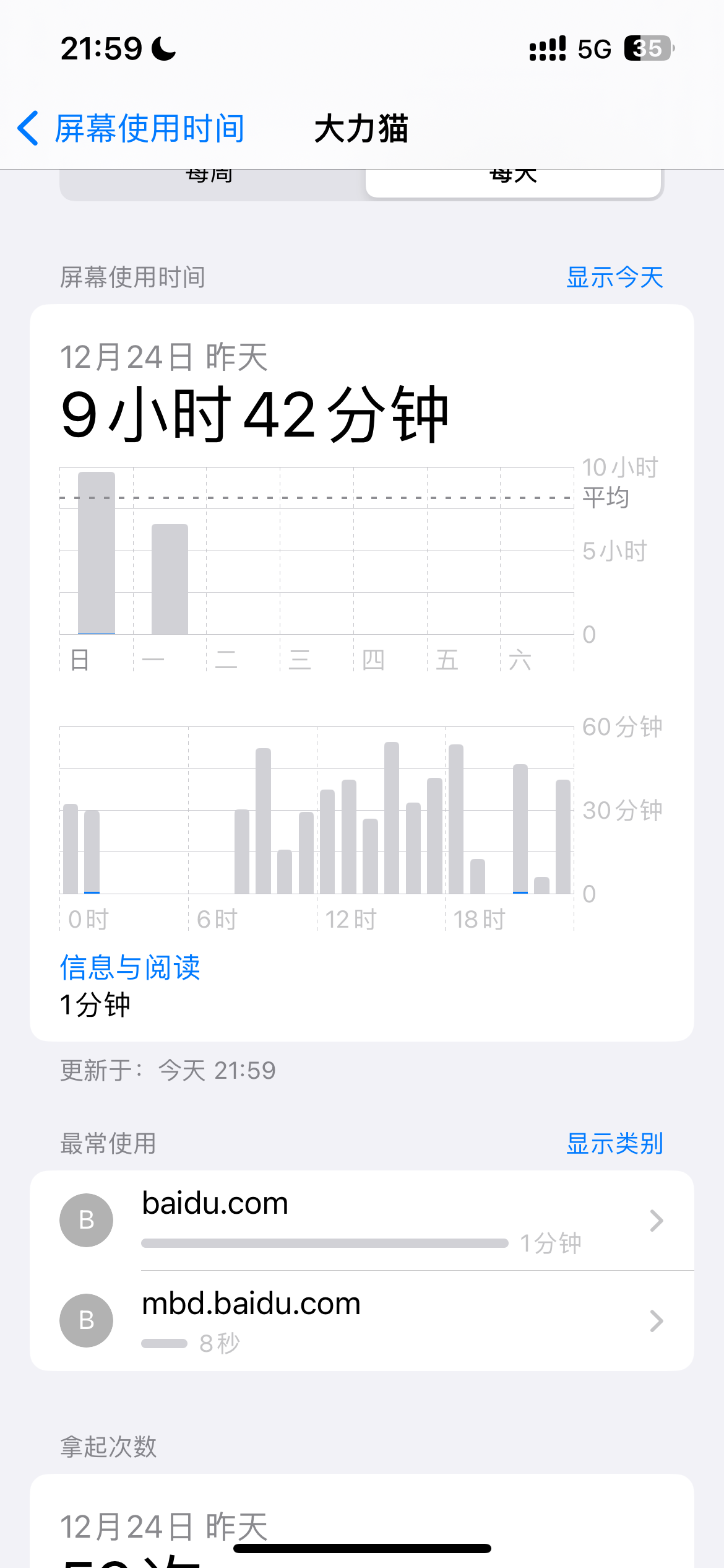 屏幕使用时间记时正常,但无法显示具体哪一个应用或类别使用时间