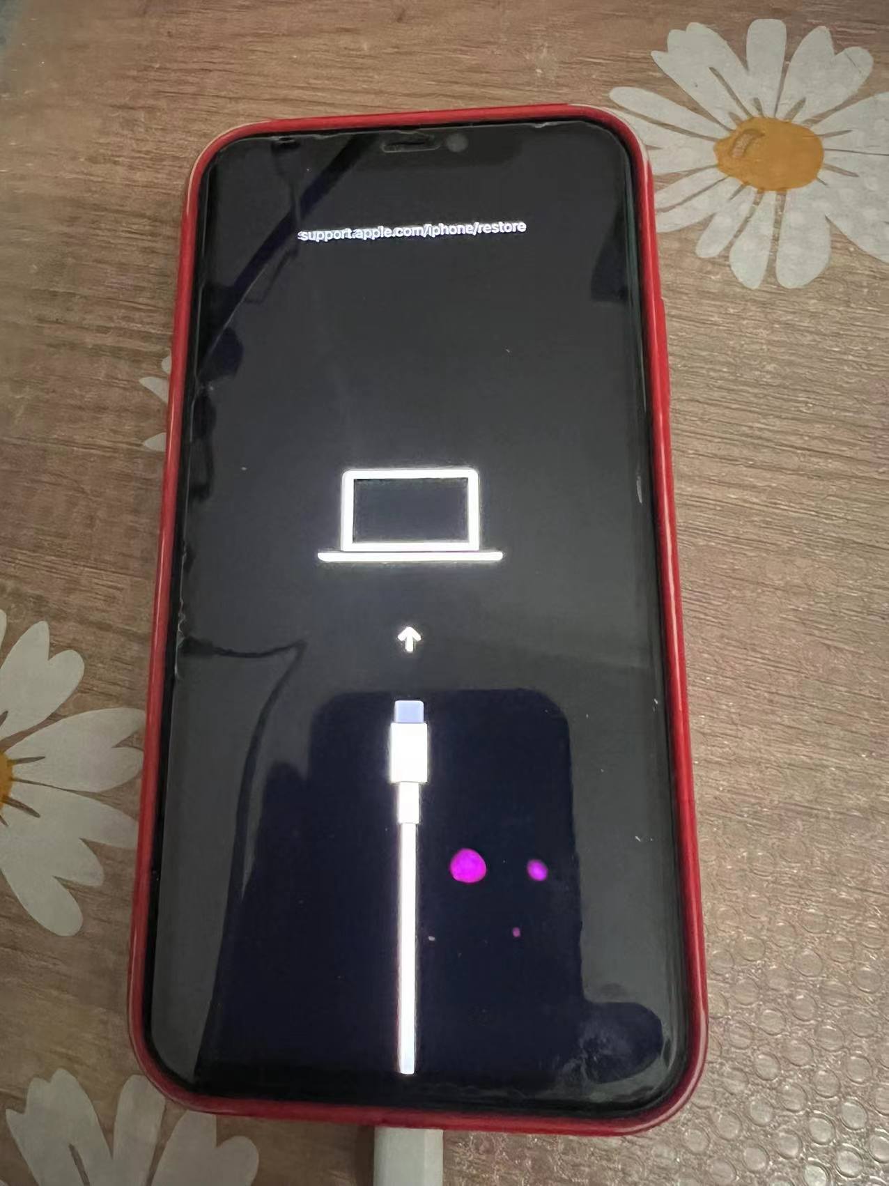 Xr 64G 半年多没用,充上电后开机提示 support.apple.com/iphone/restore 强制重启后 还是提示这个。显示一台电脑和一根数据线 如图