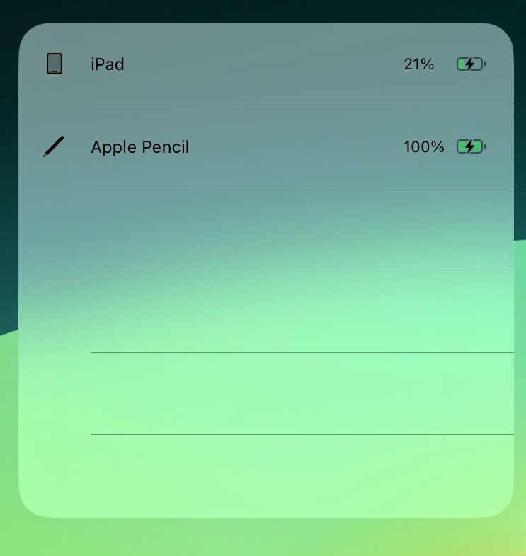 您可以在状态栏中查看 iPad 电池的剩余电量。您还可以将小组件添加到主屏幕,以监视 iPad 和所连接配件(包括 AirPods、Apple Pencil 等)的电池电量。