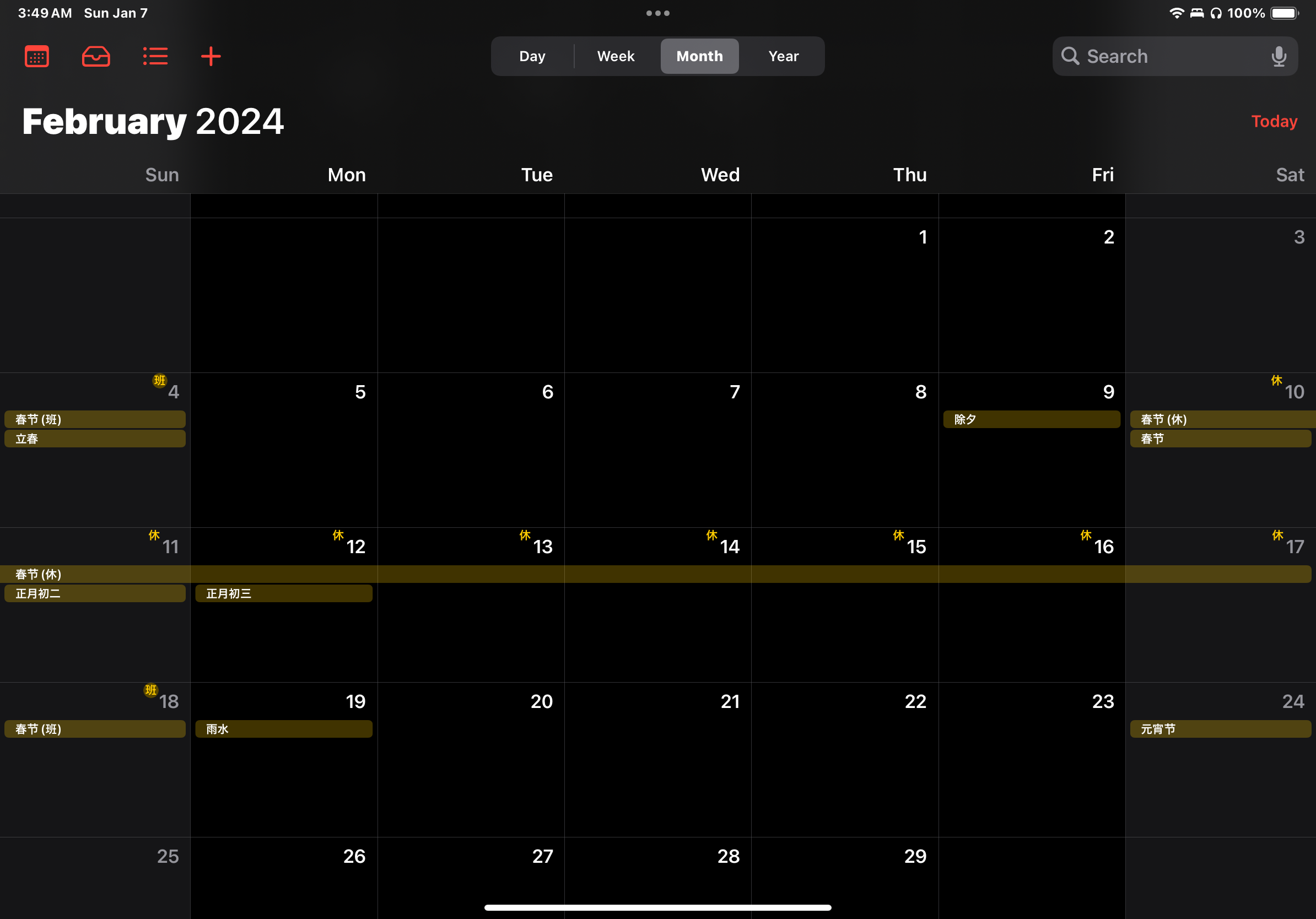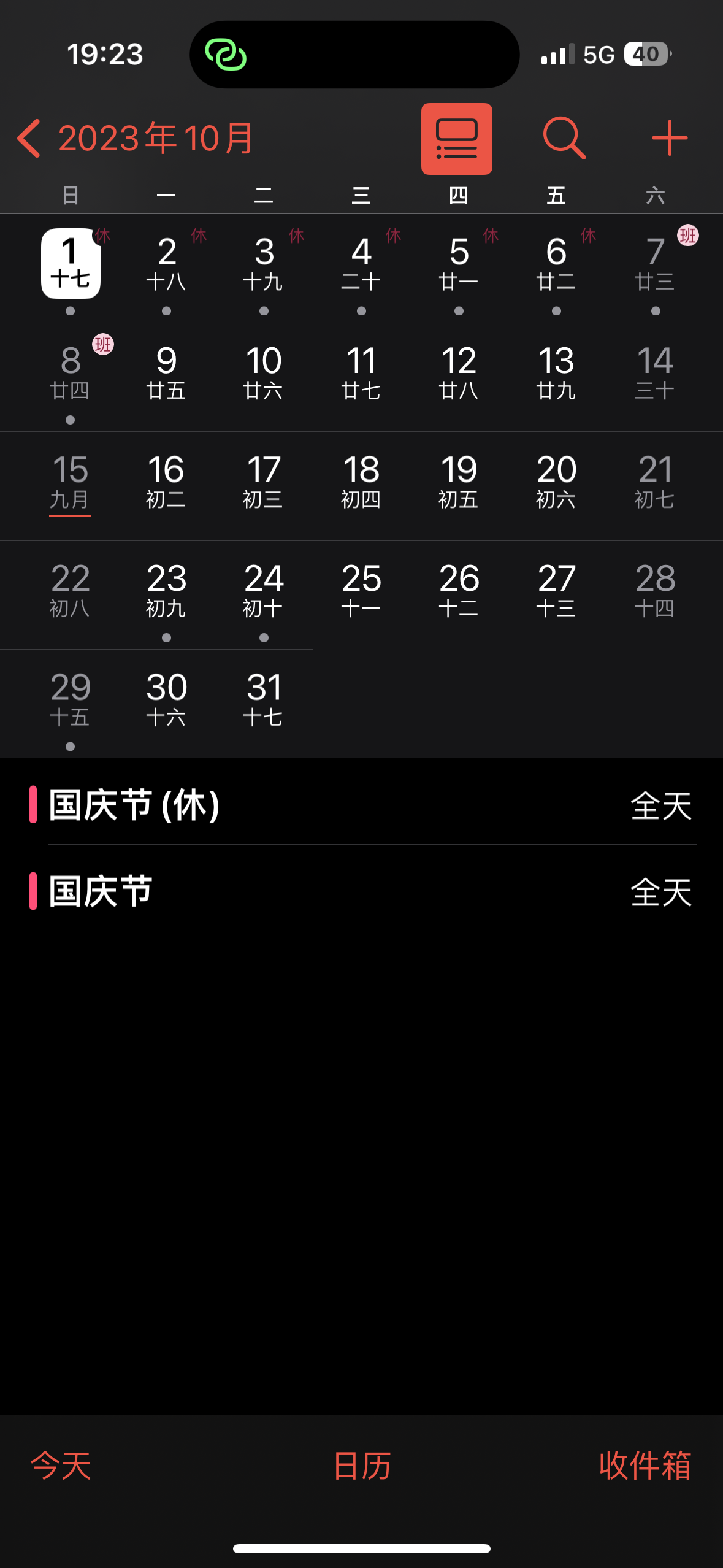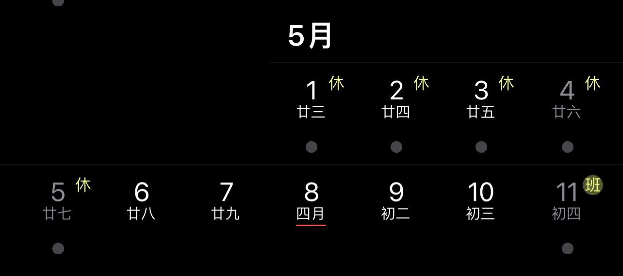 ⚠️Apple日历功能里面有个【中国大陆节假日】功能,必须勾选☑️上此功能,即可显示。