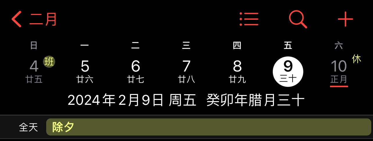 2024年之前的节假日有“休”“班”图标,2024年及以后的没有。此问题出现在系统自带的中国大陆节假日日历以及订阅的中国大陆节假日日历中。取消、重订阅,重装日历app都无法解决。
