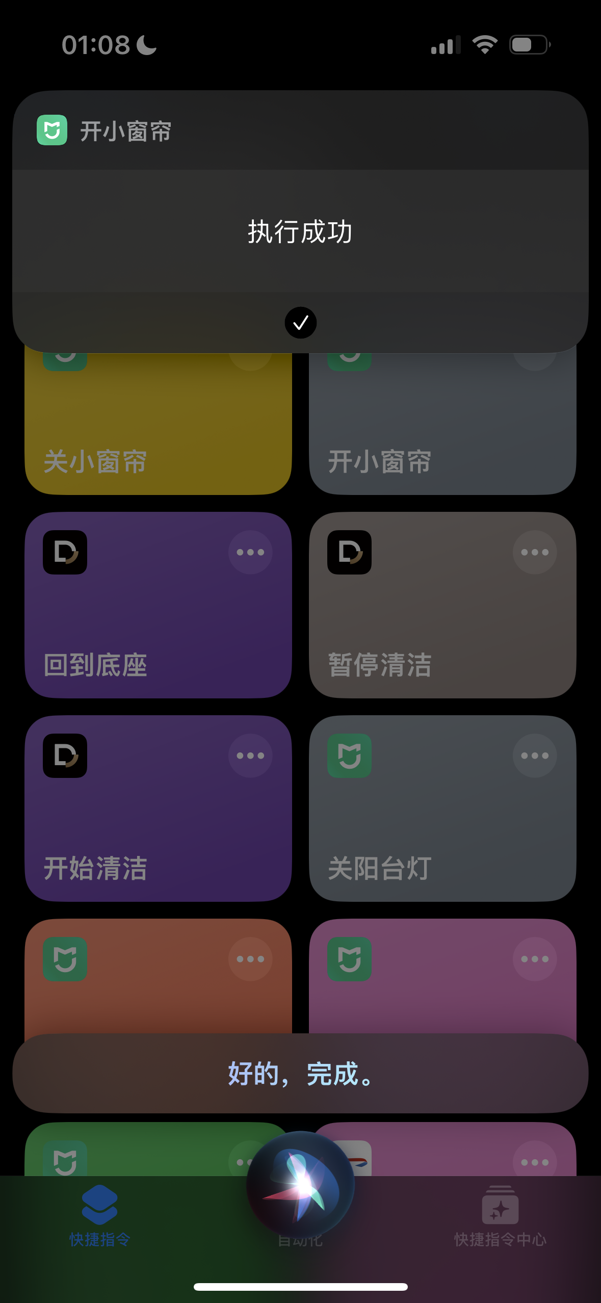 正常Siri执行快捷指令去到米家app的反应: