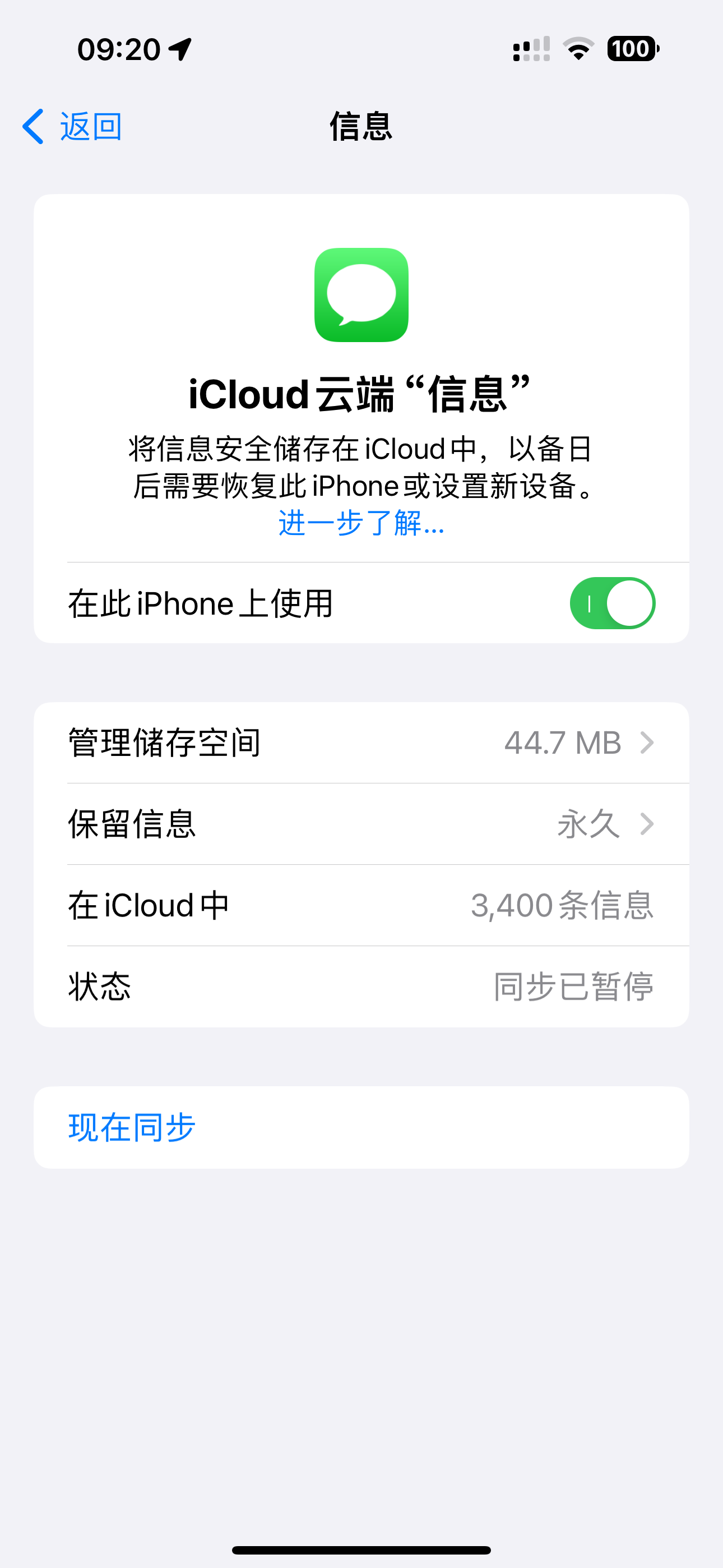短信下方显示同步已暂停是什么原因,在设置里的icloud中找到短信点击同步后依然显示已暂停。