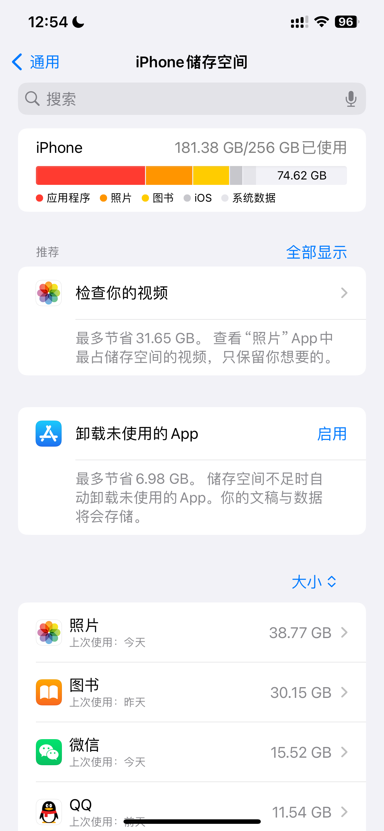 导入了八十多本电子书,加起来就500多mb,图书软件占用有39多g,重启没什么变化