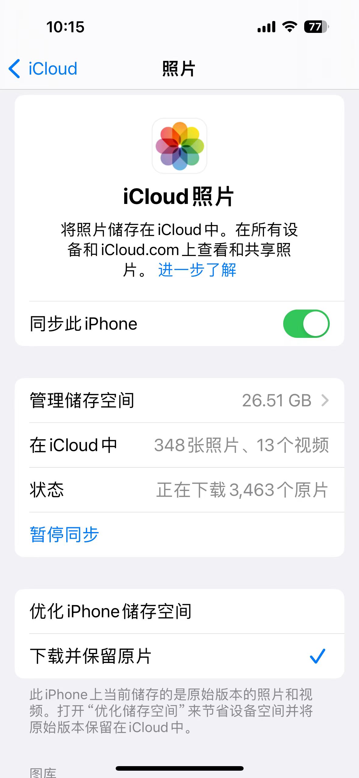 一开始只同步了一千多的照片,后来就是在同步剩下的,(如图)说是在下载3000多个原片,结果一会说同步完成,但是手机本地图片里这3000张直接没了,I cloud里也没有,而且很奇怪的是手机里照片内存是显示的32G,但是备份到云盘上的只有26G。现在想了很多办法,就还是找不到那3000张照片。