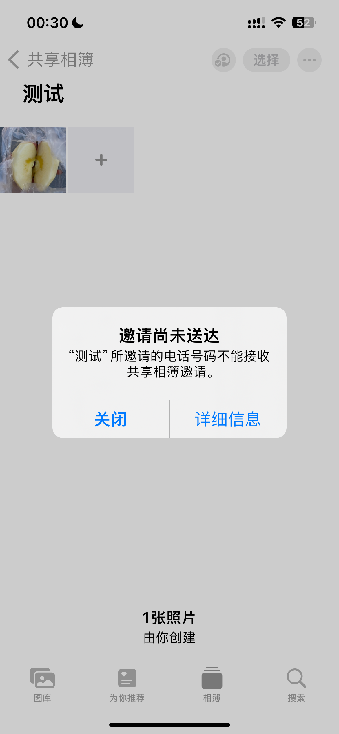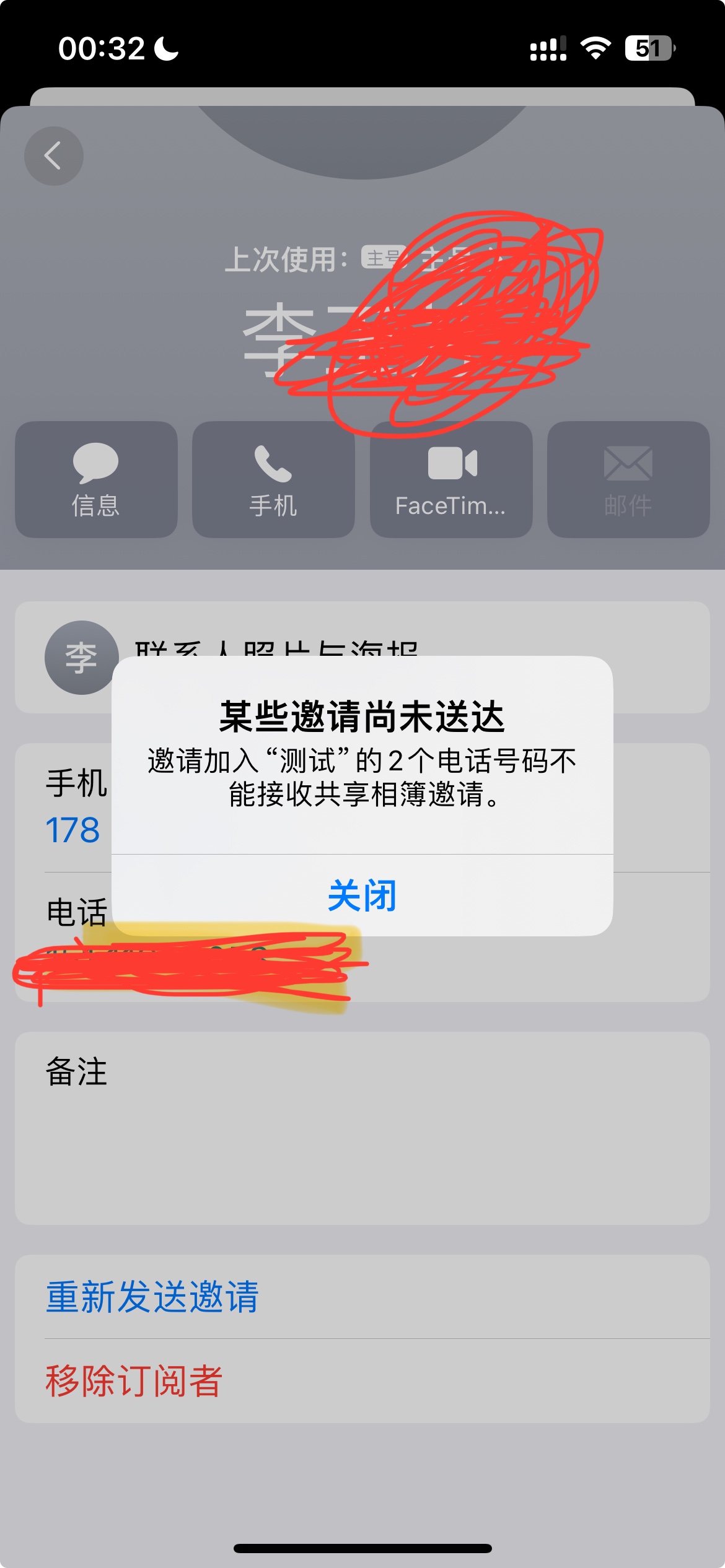共享相册无法邀请他人,显示号码无法送达,电话号码都能打通的,但我自己能接受别人的邀请