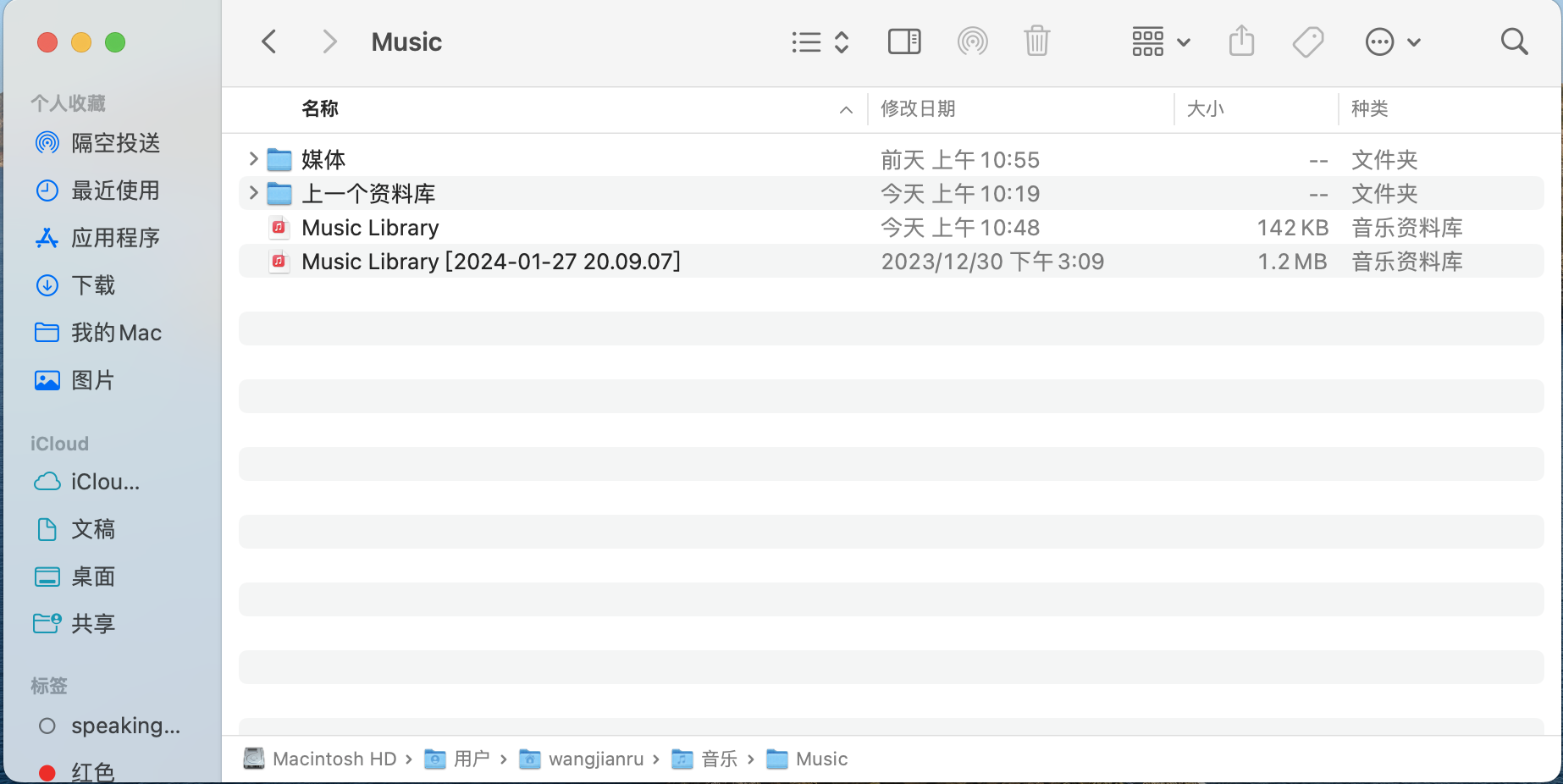 我之前一直连续订阅Apple Music的,但是因为某原因停了一段时间。期间我的iCloud空间满了,我怀疑是不是因为没空间了,就导致我的资料库信息没有了。因为我之前也停只订阅过Apple Music,再次续订也没有出现过这种情况,结果这次就全部消失了。不过我的Mac上还可以找到我上一个资料库的文件