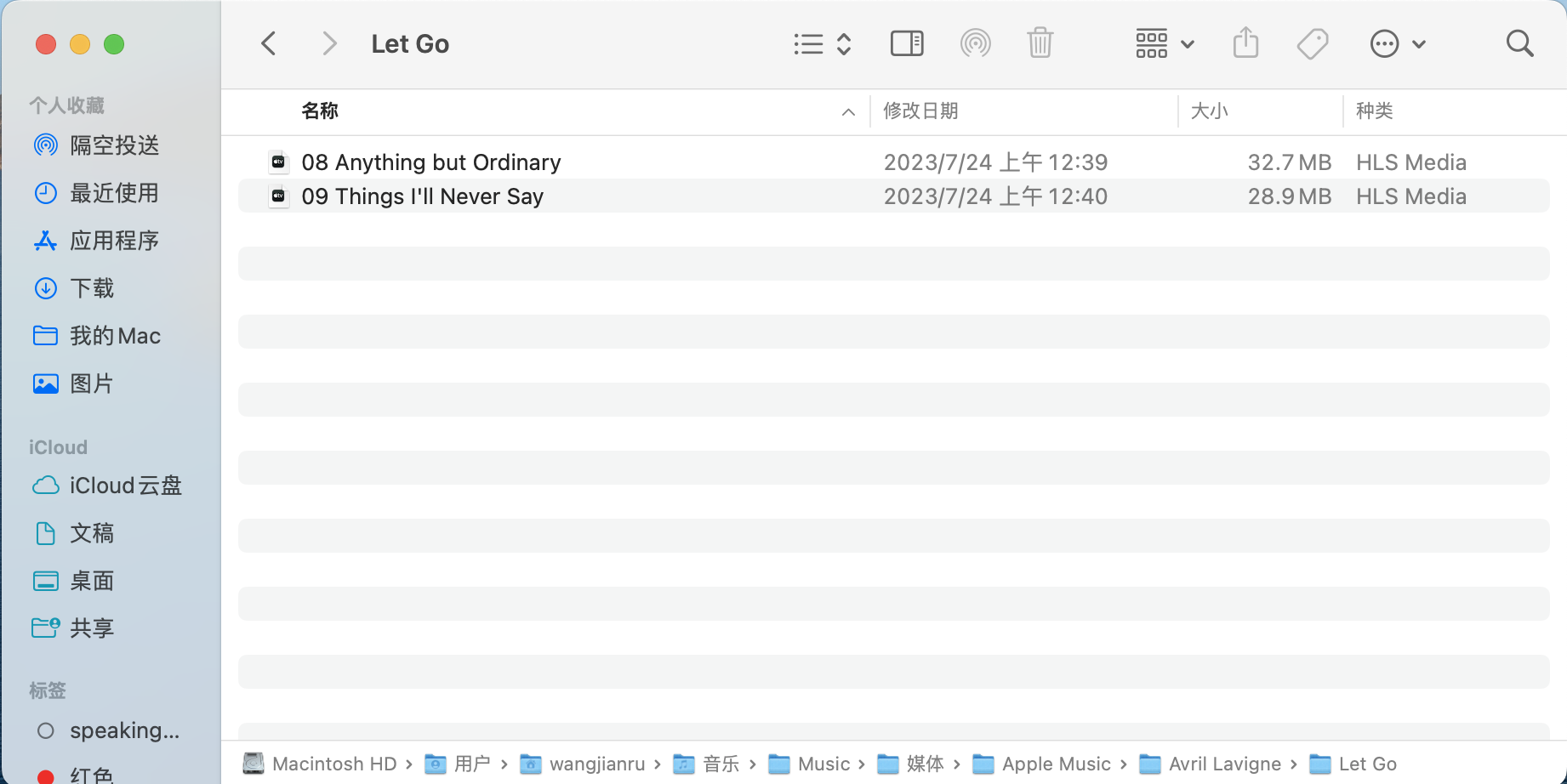 其次,媒体文件夹里的音乐也是有的,只不过歌曲的格式都变成了HLS Media,如图
