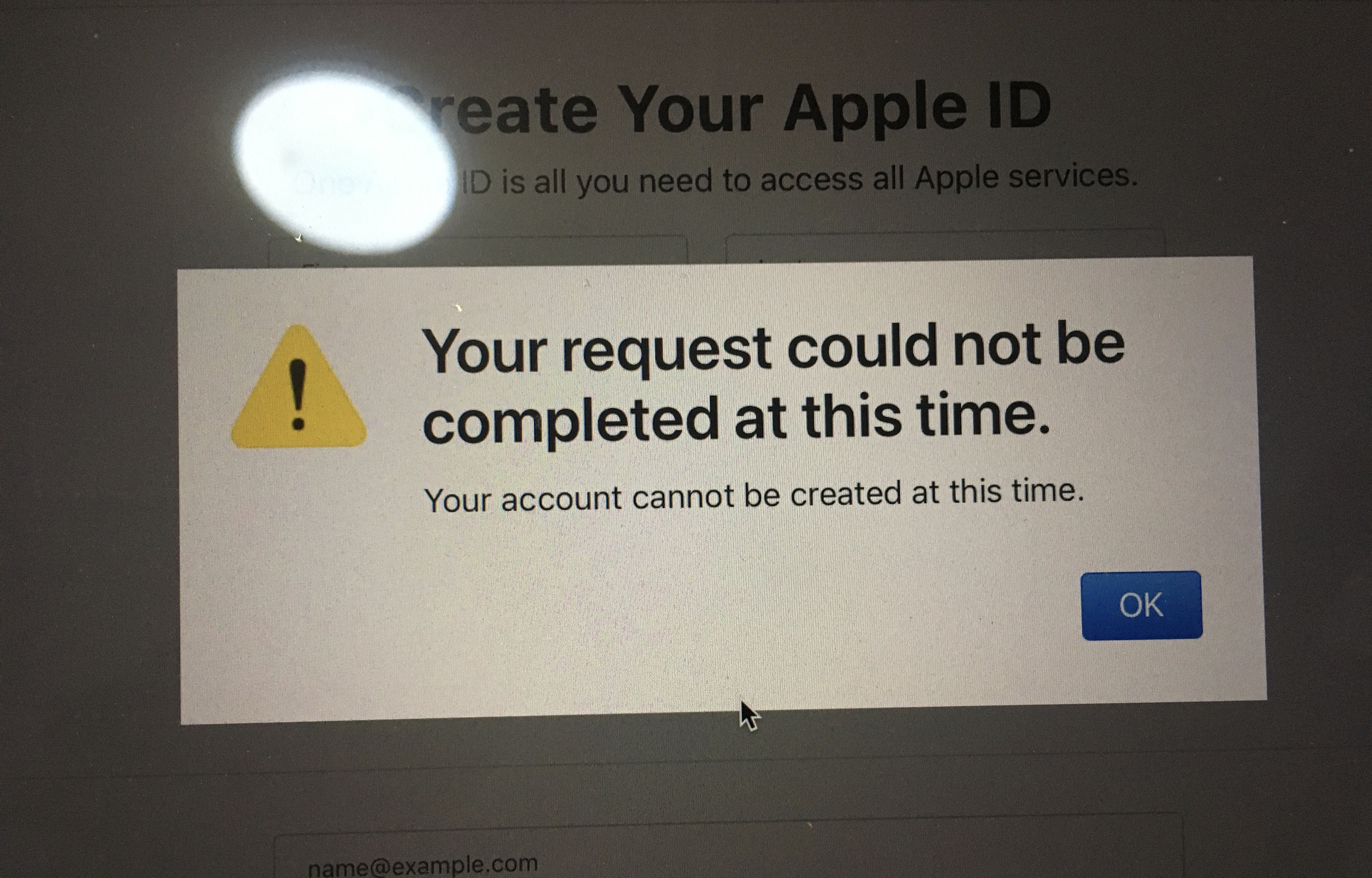 创建美区Apple ID显示“your request could not be completed at this time"多次尝试不行,换设备也不行。